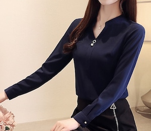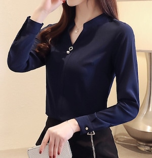 V neck elegant slim chiffon shirt