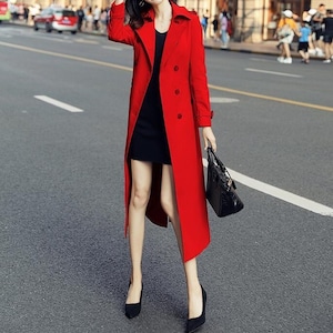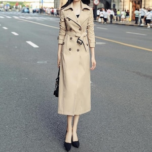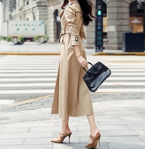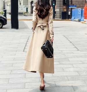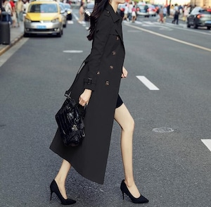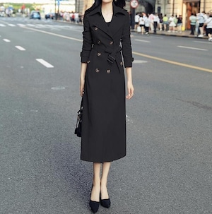 Double breast elegant slim long trench coat