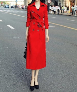 羽織るだけでエレガントでフェミニンな雰囲気が漂うダブルブレストエレガントスリムロングトレンチコート。