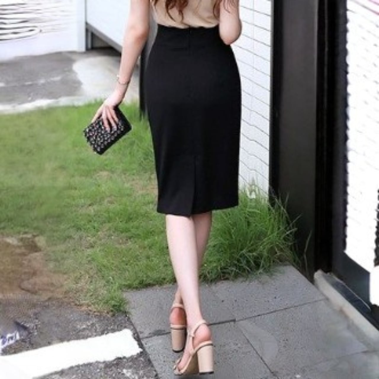着用するだけでフェミニンな雰囲気が漂うハイウエストエレガントバックスリットスリムミドルスカート。