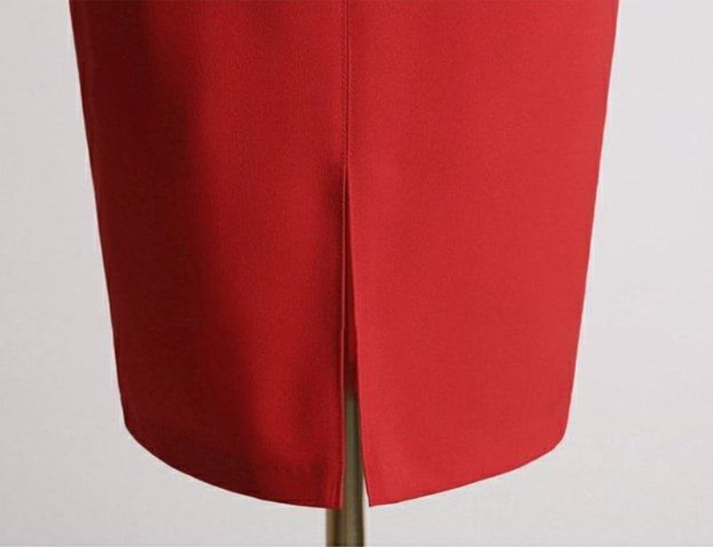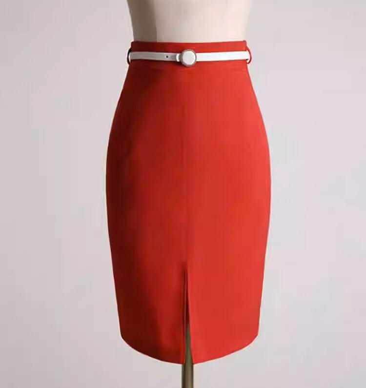 着用するだけでフェミニンな雰囲気が漂うハイウエストエレガントフロントスリットスリムミドルスカート。