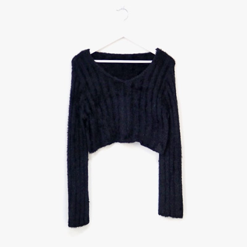 V neck elegant fluffy short knit