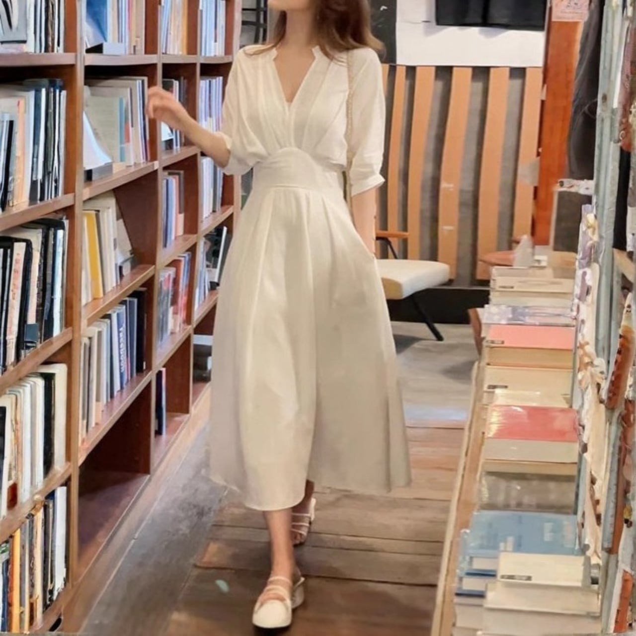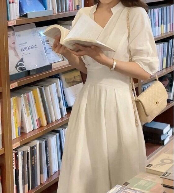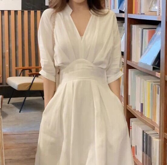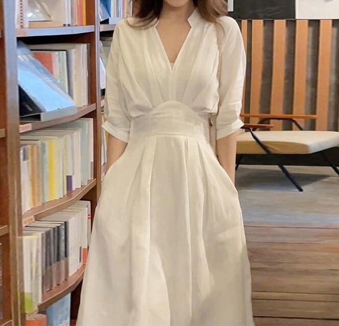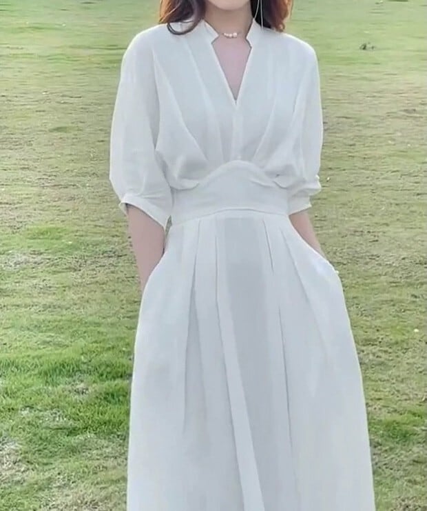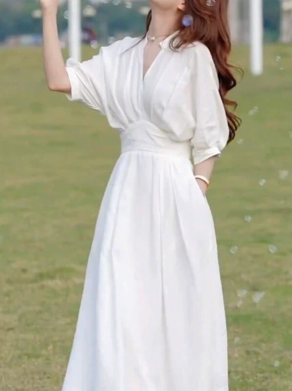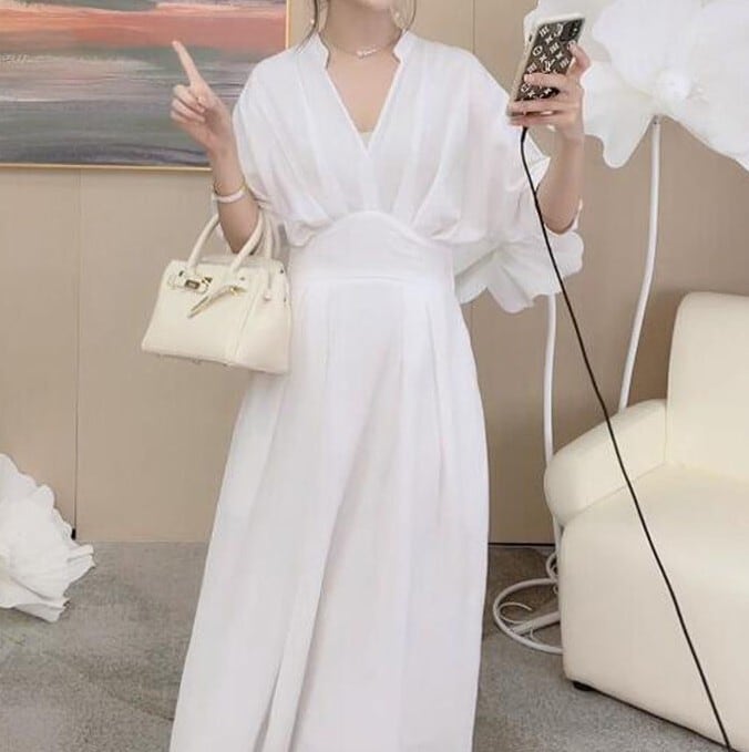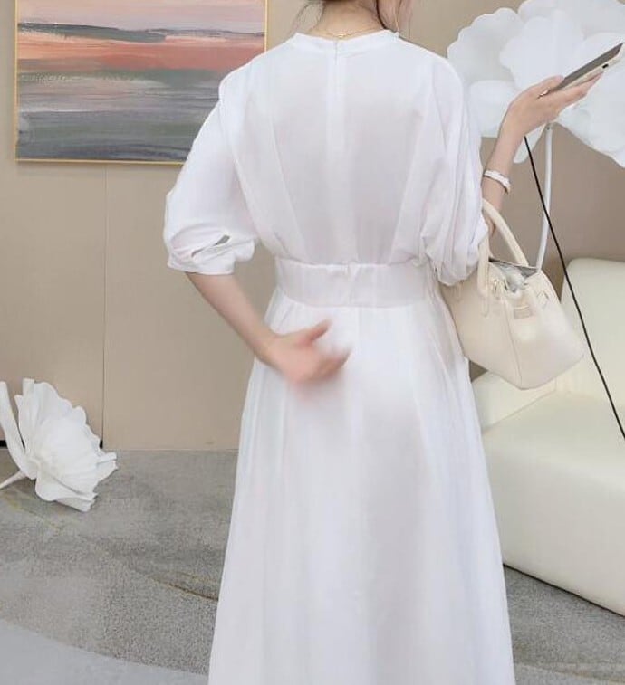 Three quarter sleeve elegant waist slim long dress
