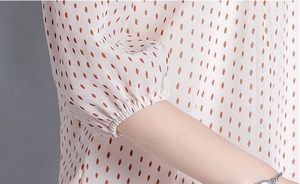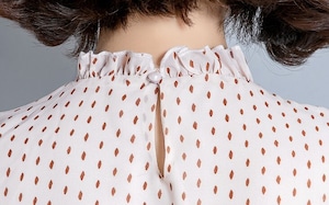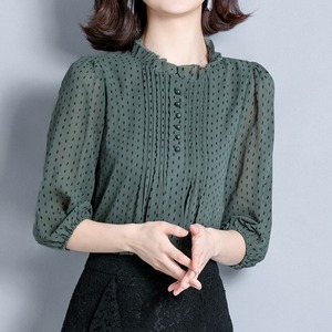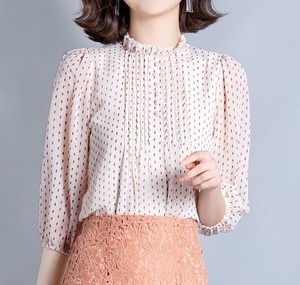 Stand collar elegant three quarter sleeve polka dot chiffon shirt