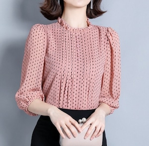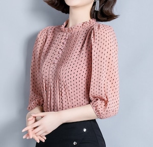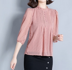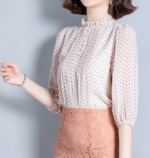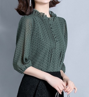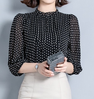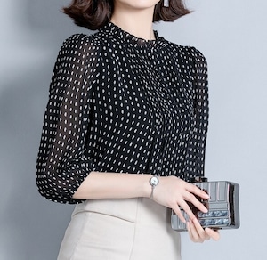 Stand collar elegant three quarter sleeve polka dot chiffon shirt ( 4color )