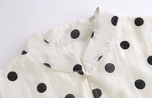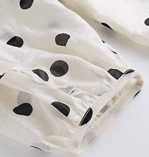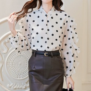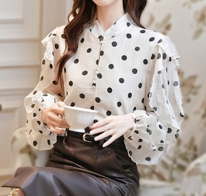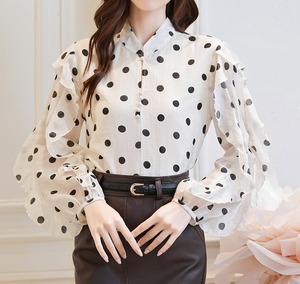 Stand collar elegant ruffle sleeve polka dot chiffon shirt