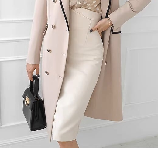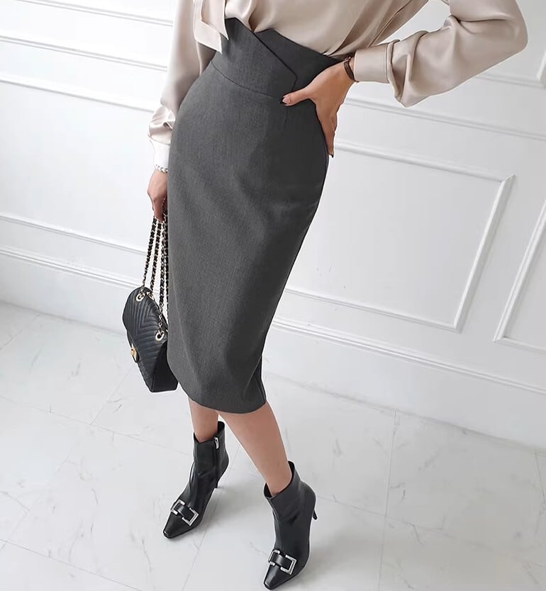 着用するだけでフェミニンな雰囲気が漂うハイウエストエレガントクロスステッチスリムミドルスカート。