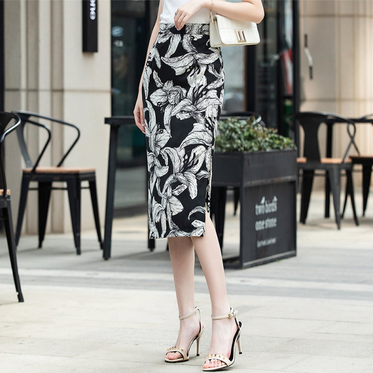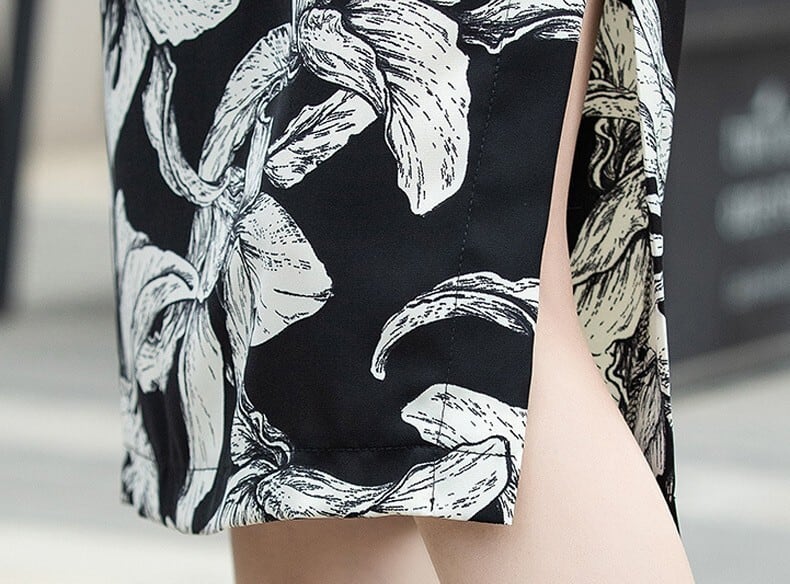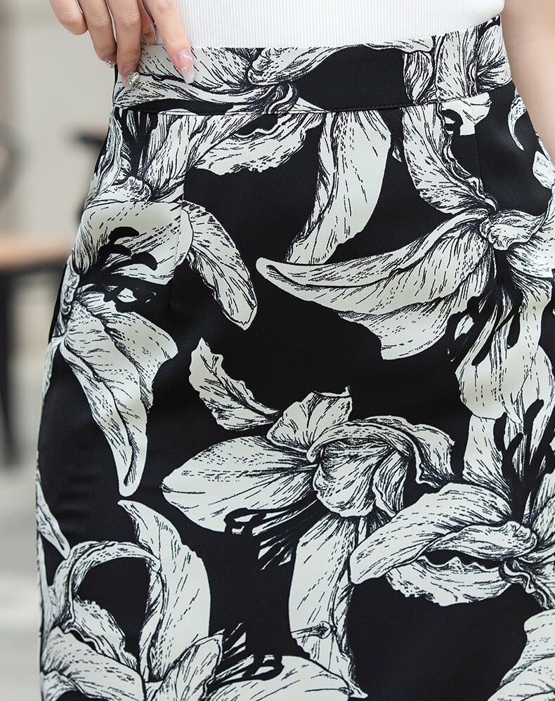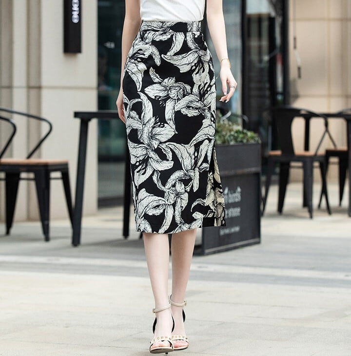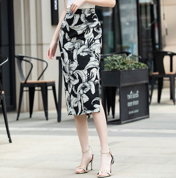 High waist elegant side slit floral skirt