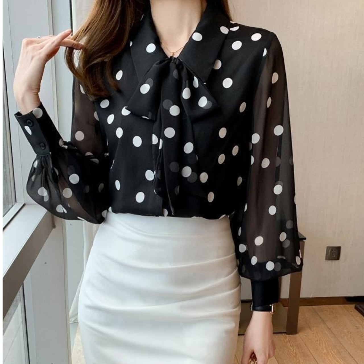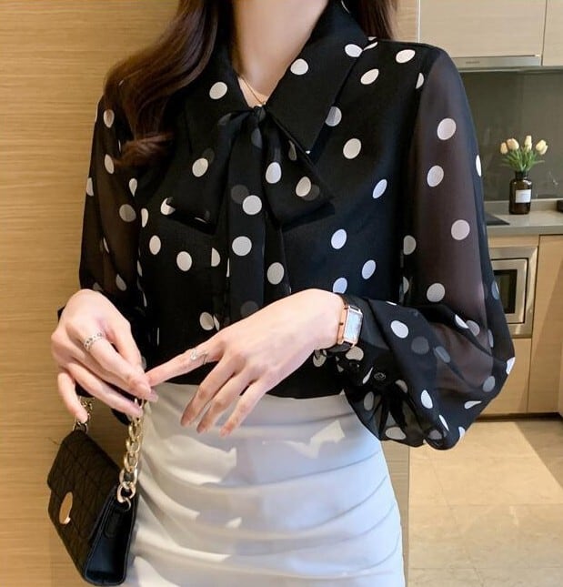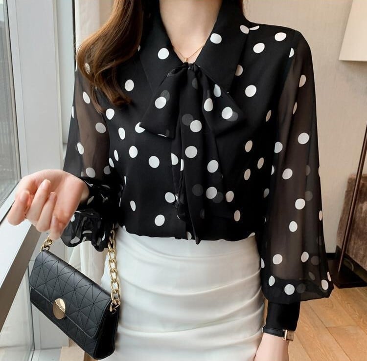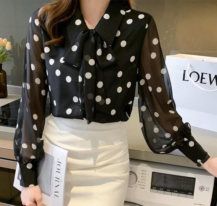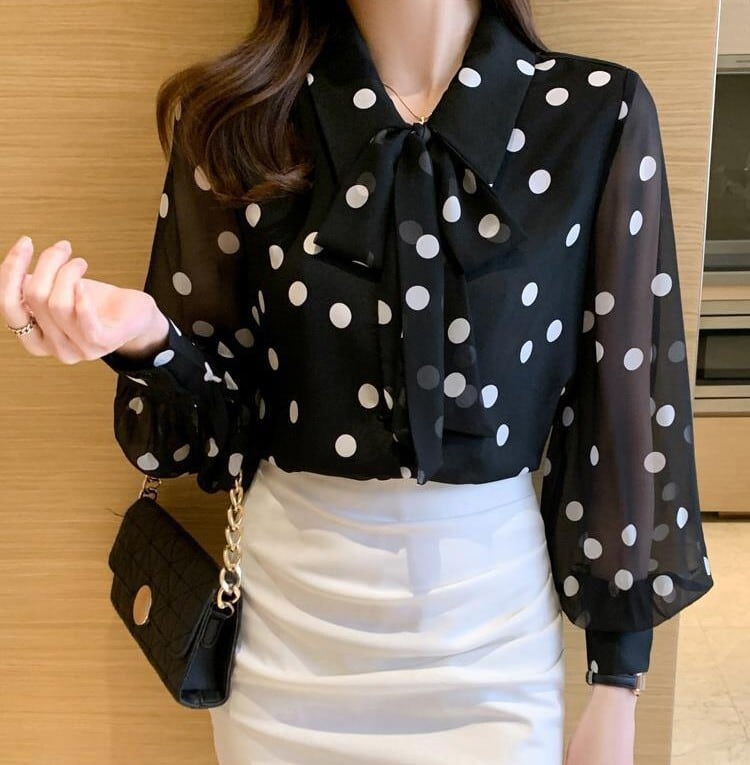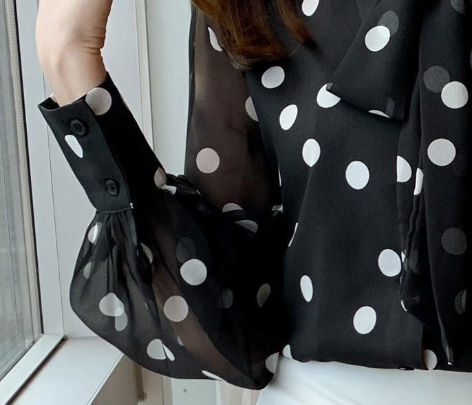 Chest tie elegant polka dot chiffon blouse