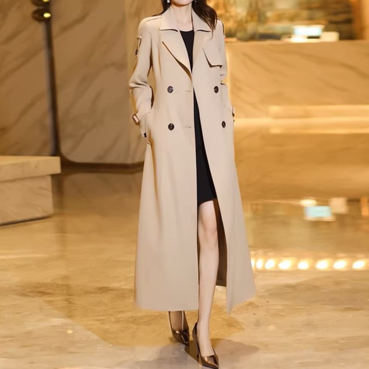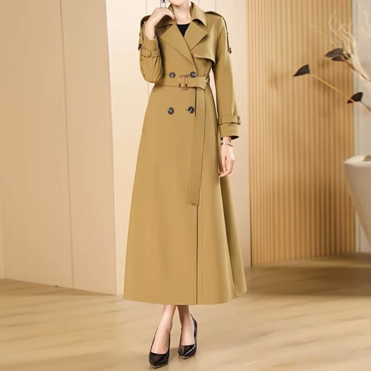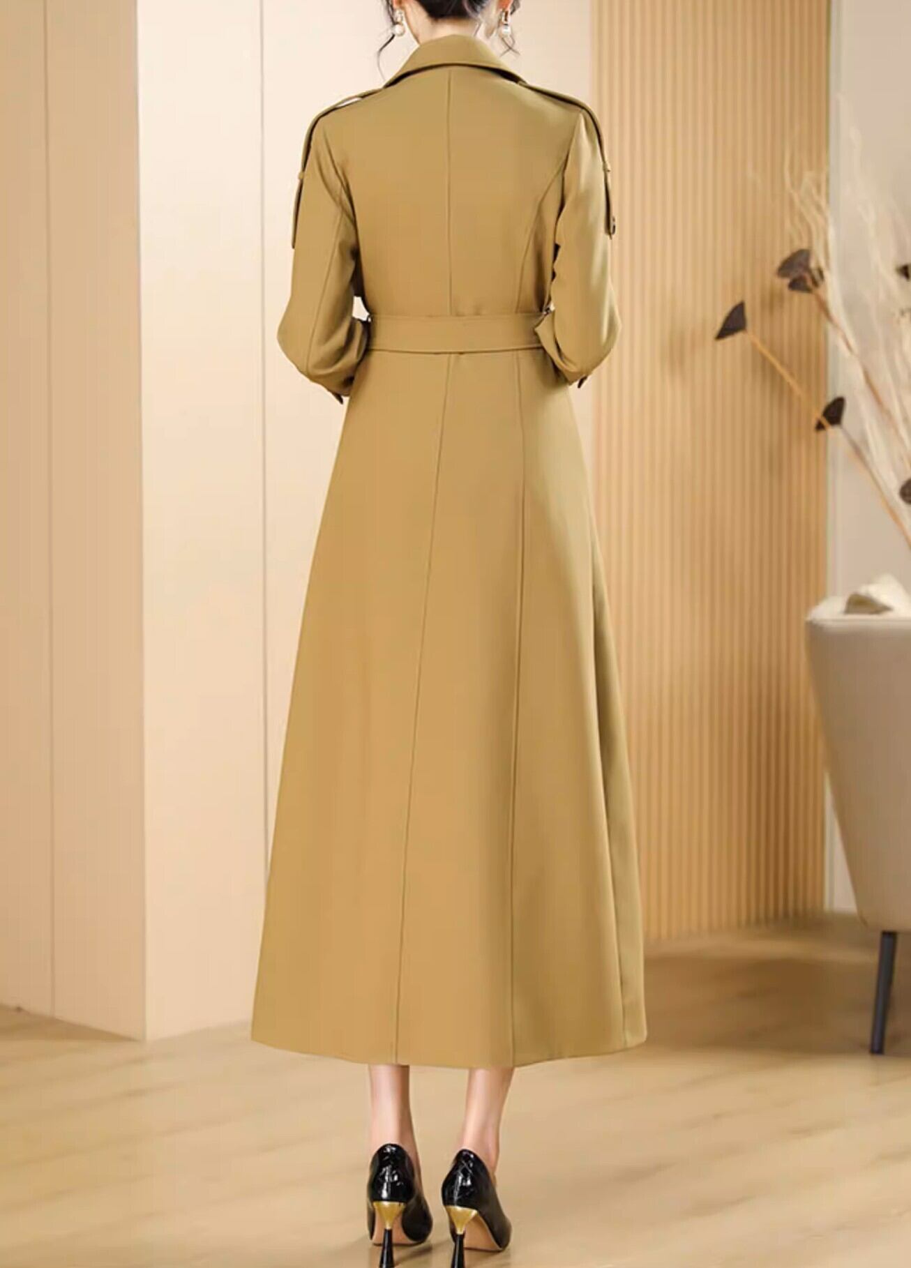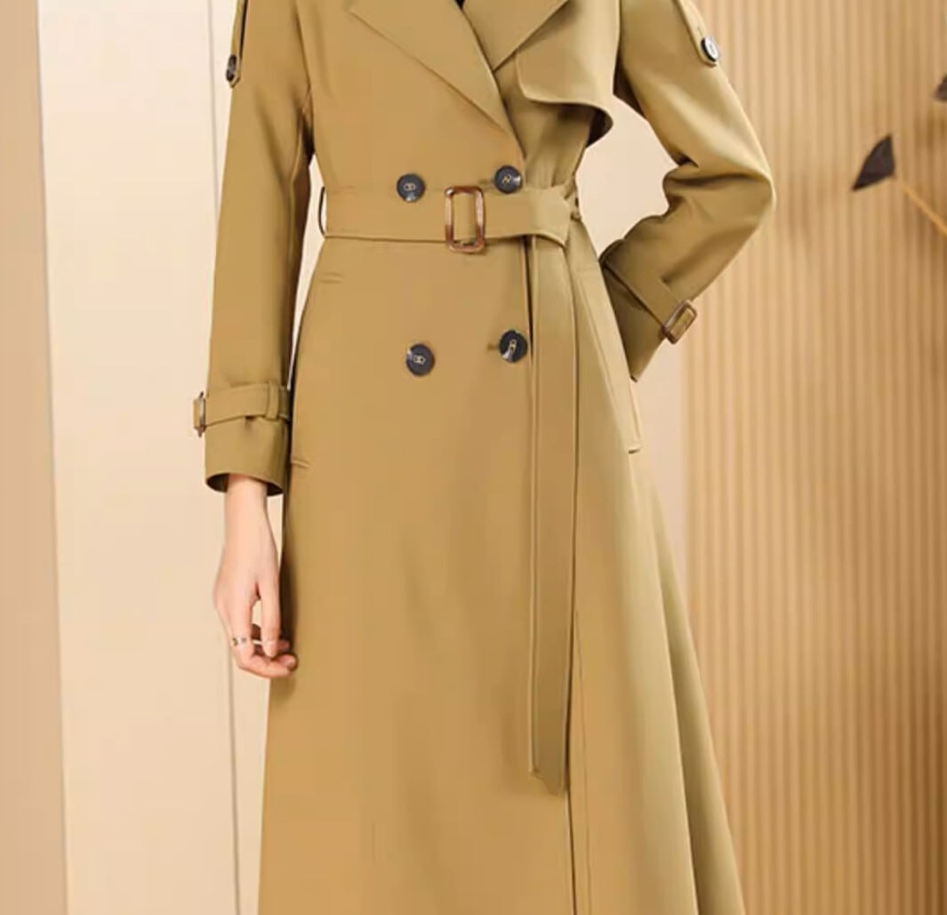 Double breast elegant slim fit long trench coat
