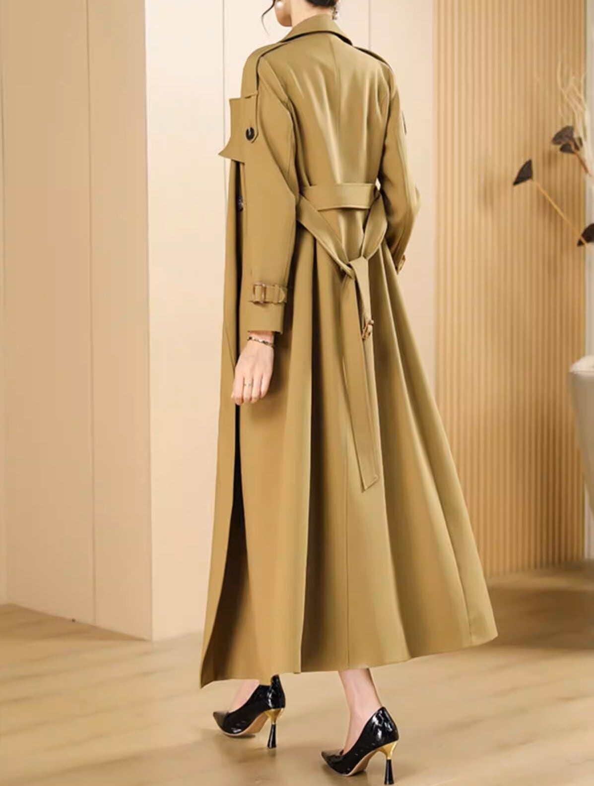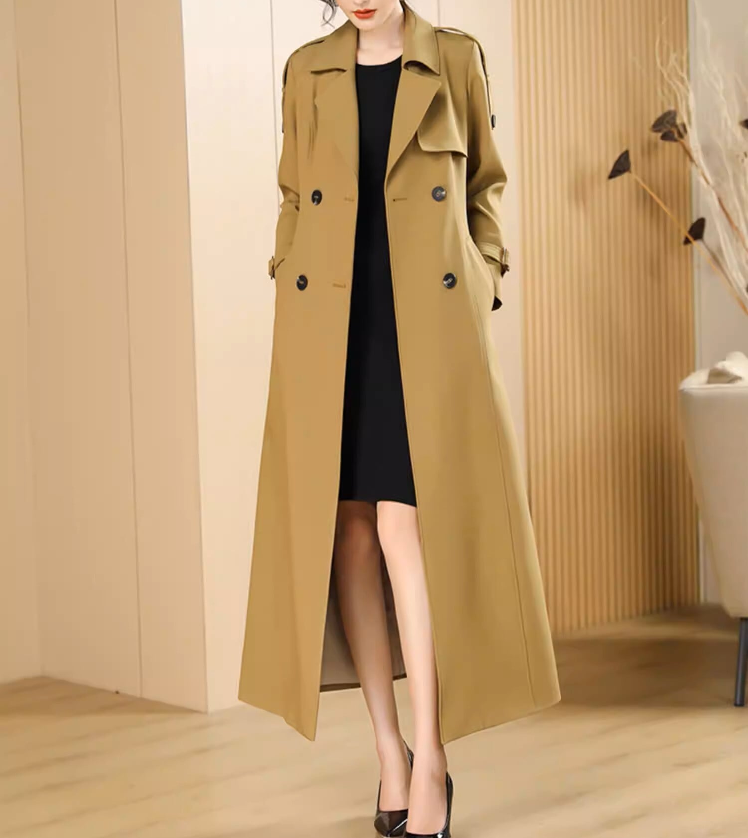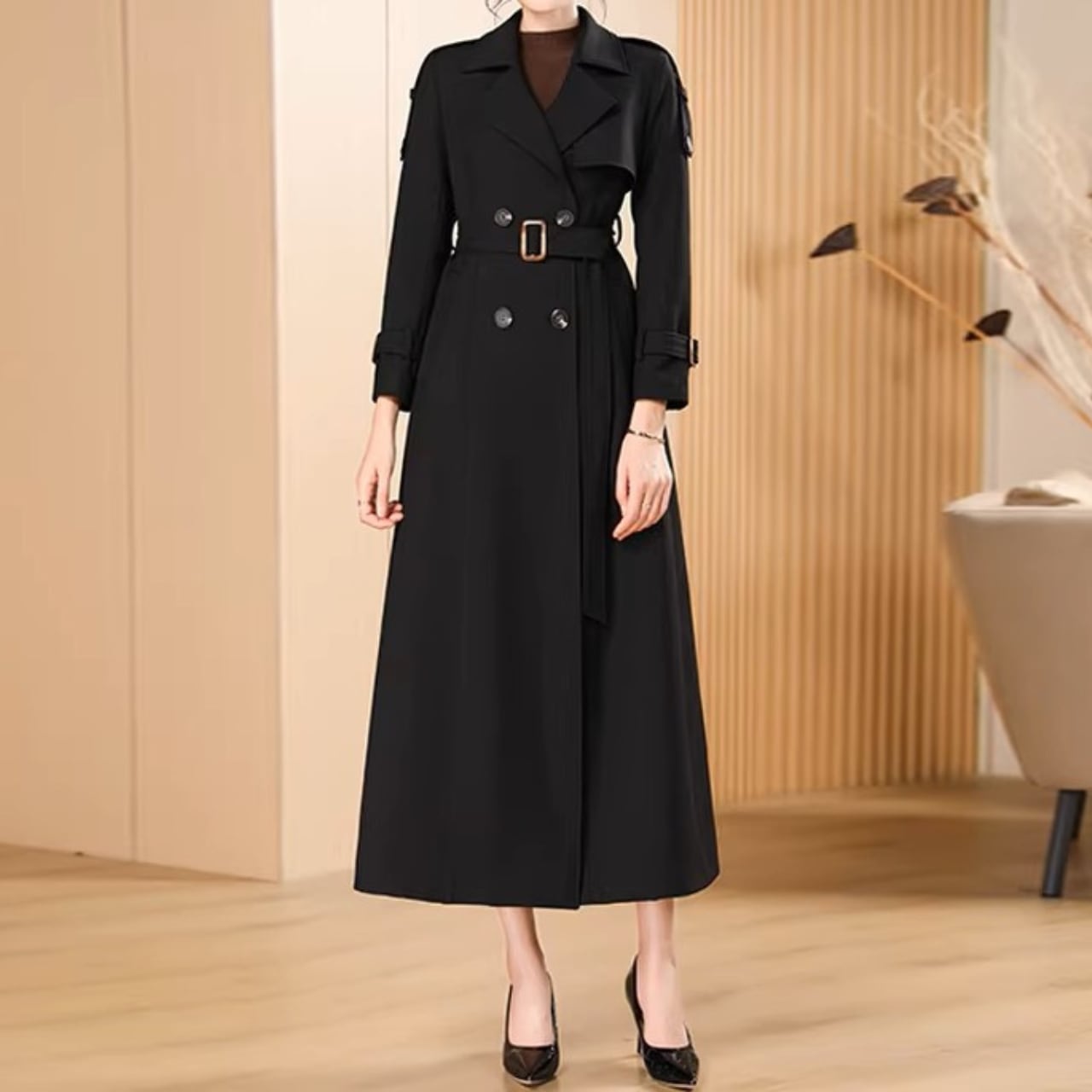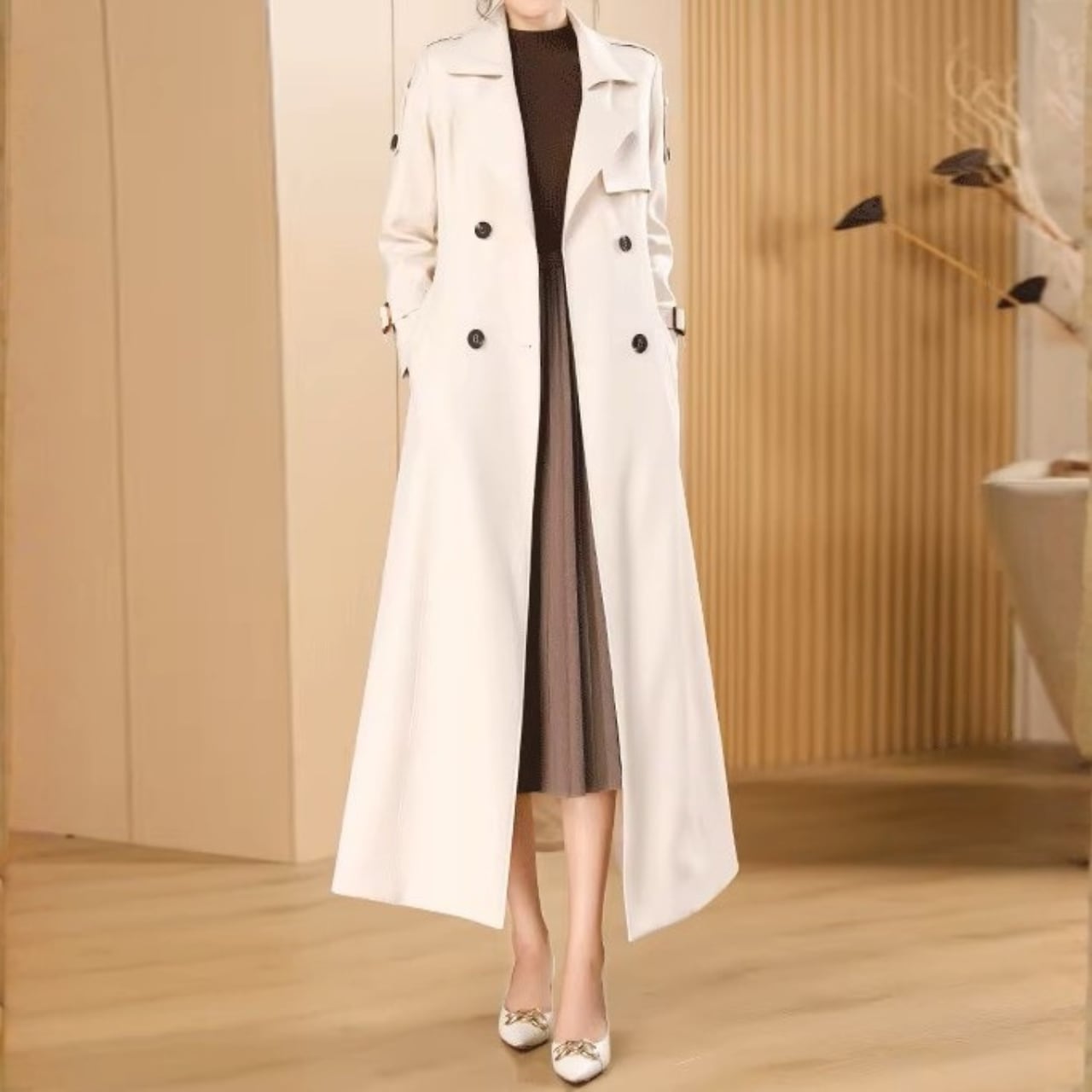 Double breast elegant slim fit long trench coat
