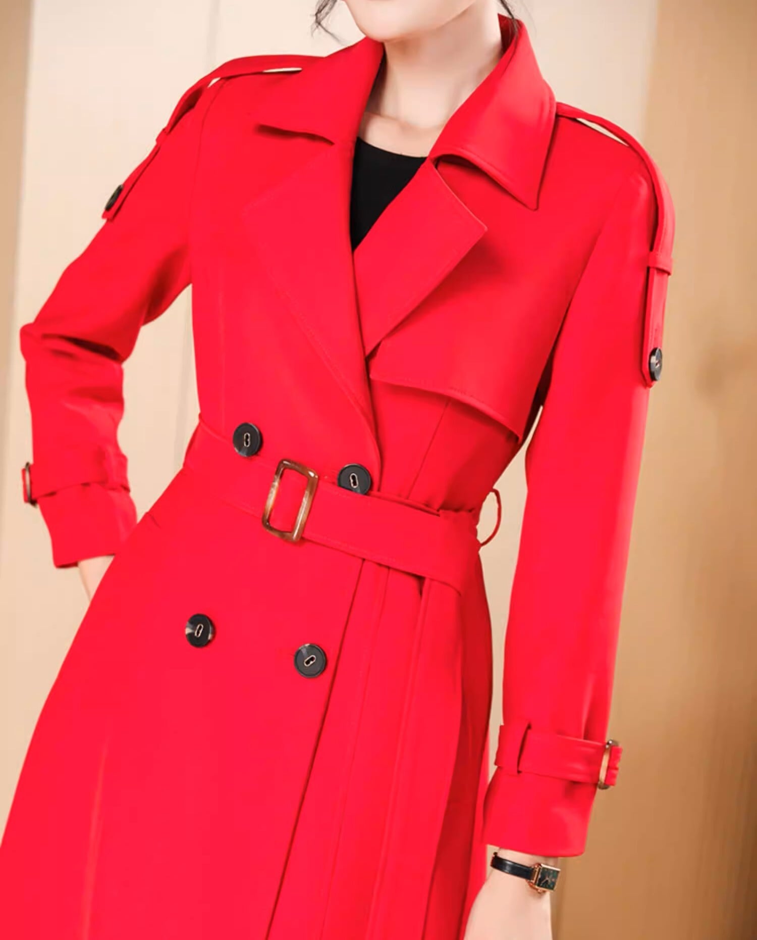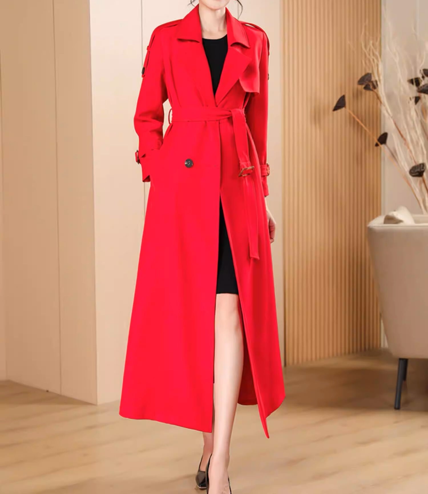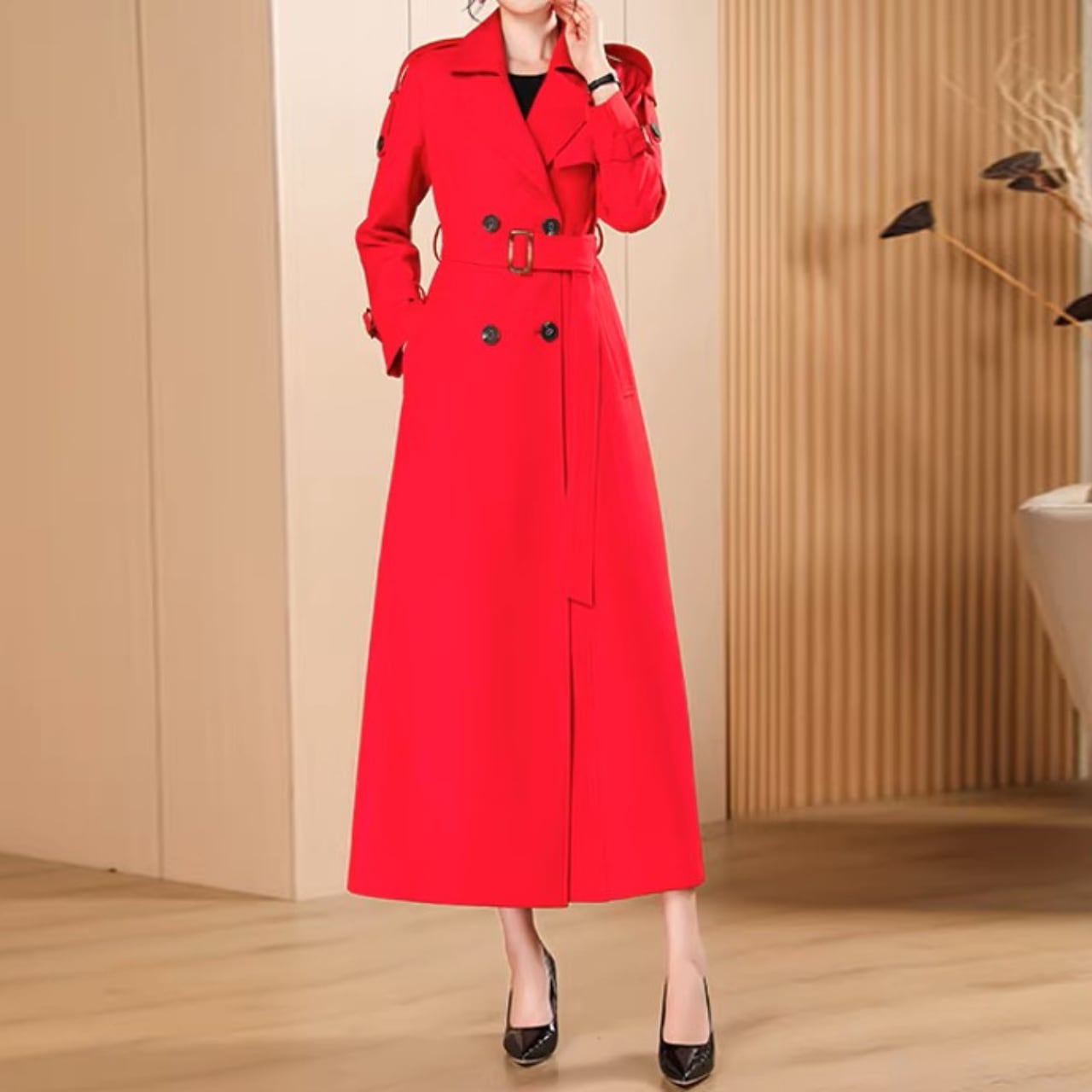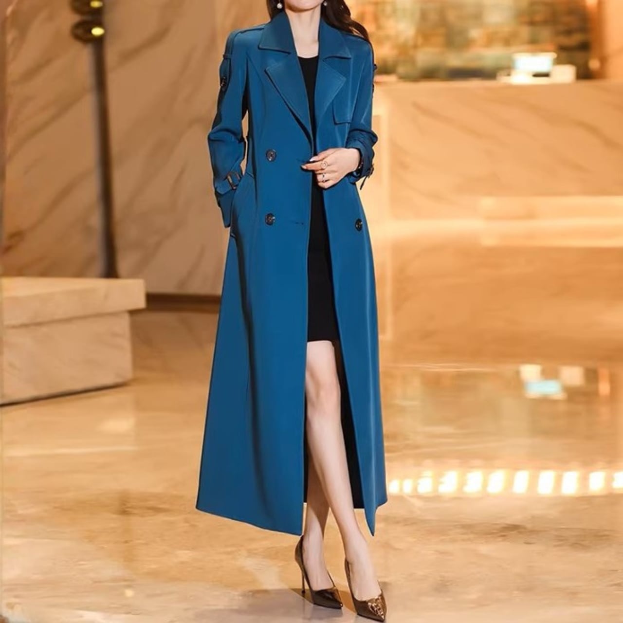 Double breast elegant slim fit long trench coat