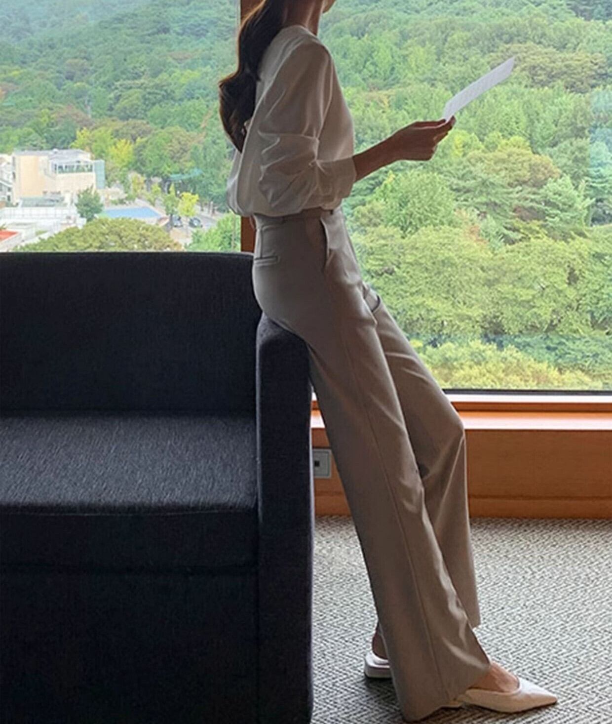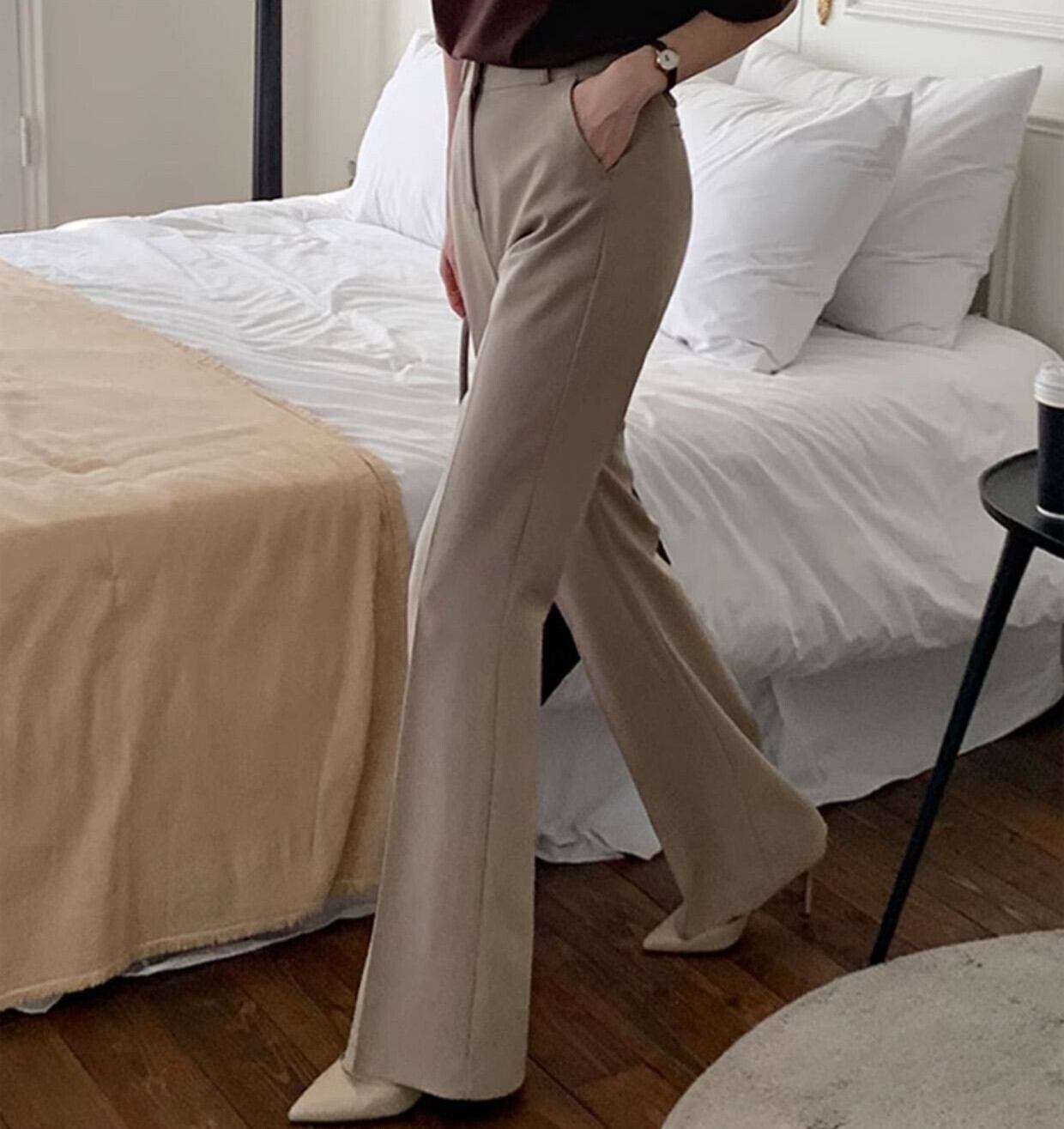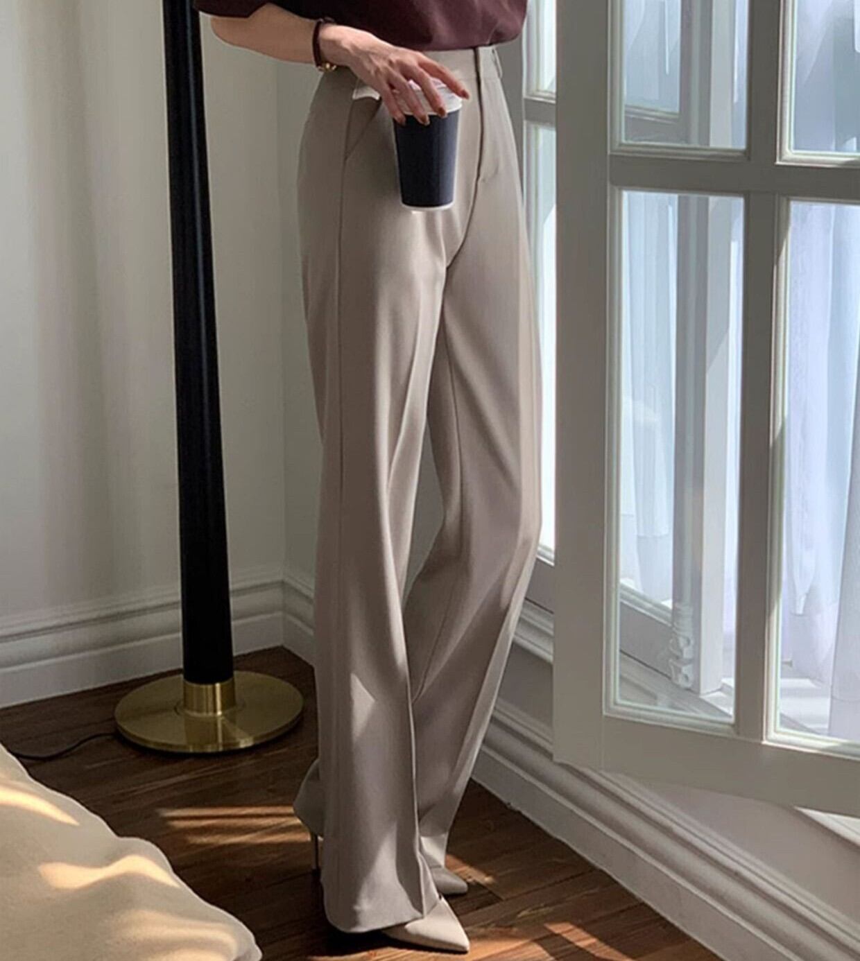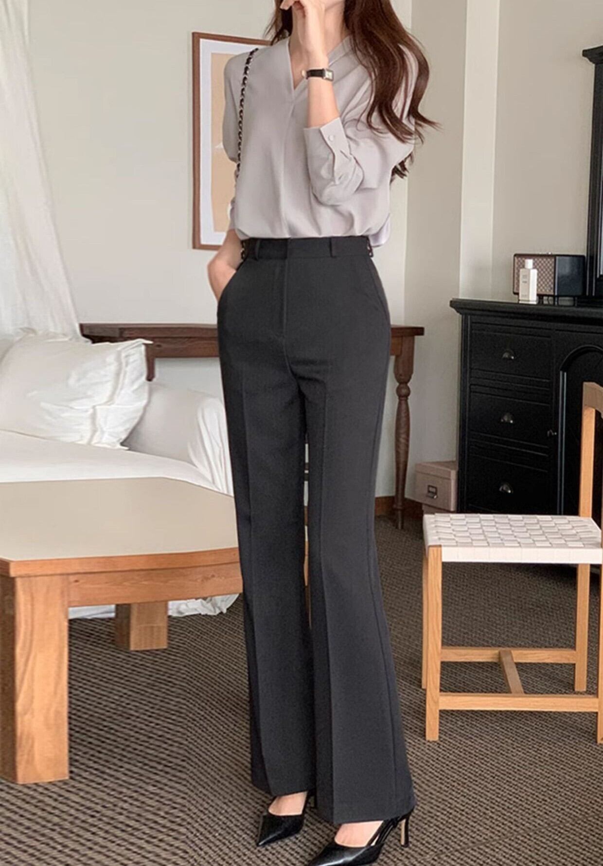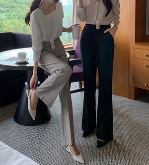 High waist elegant slim flare pants ( 2color )