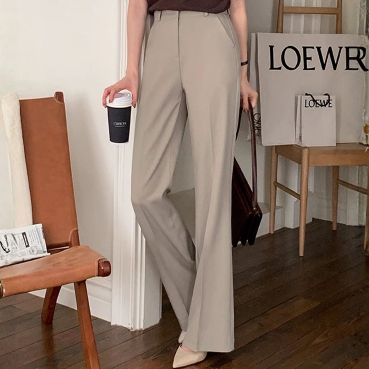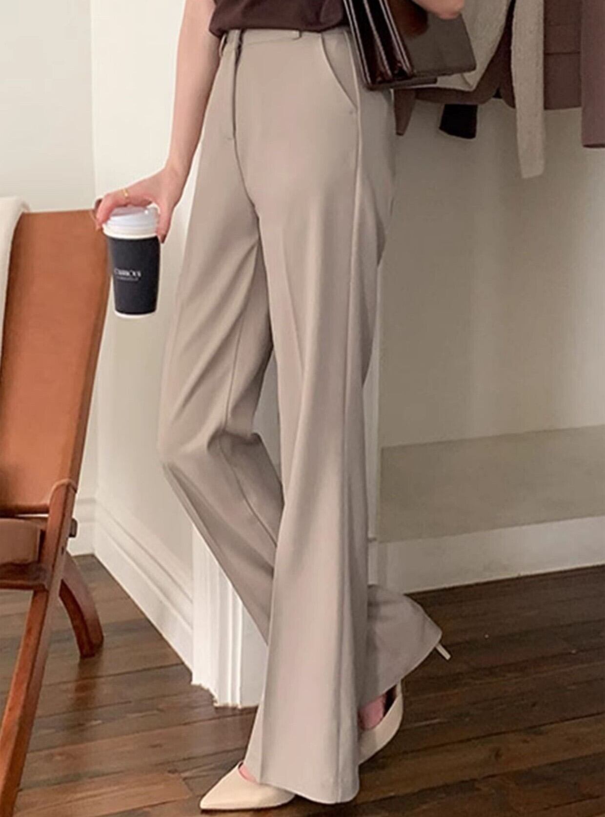 着用するだけで綺麗見えするハイウエストエレガントスリムフレアパンツ。