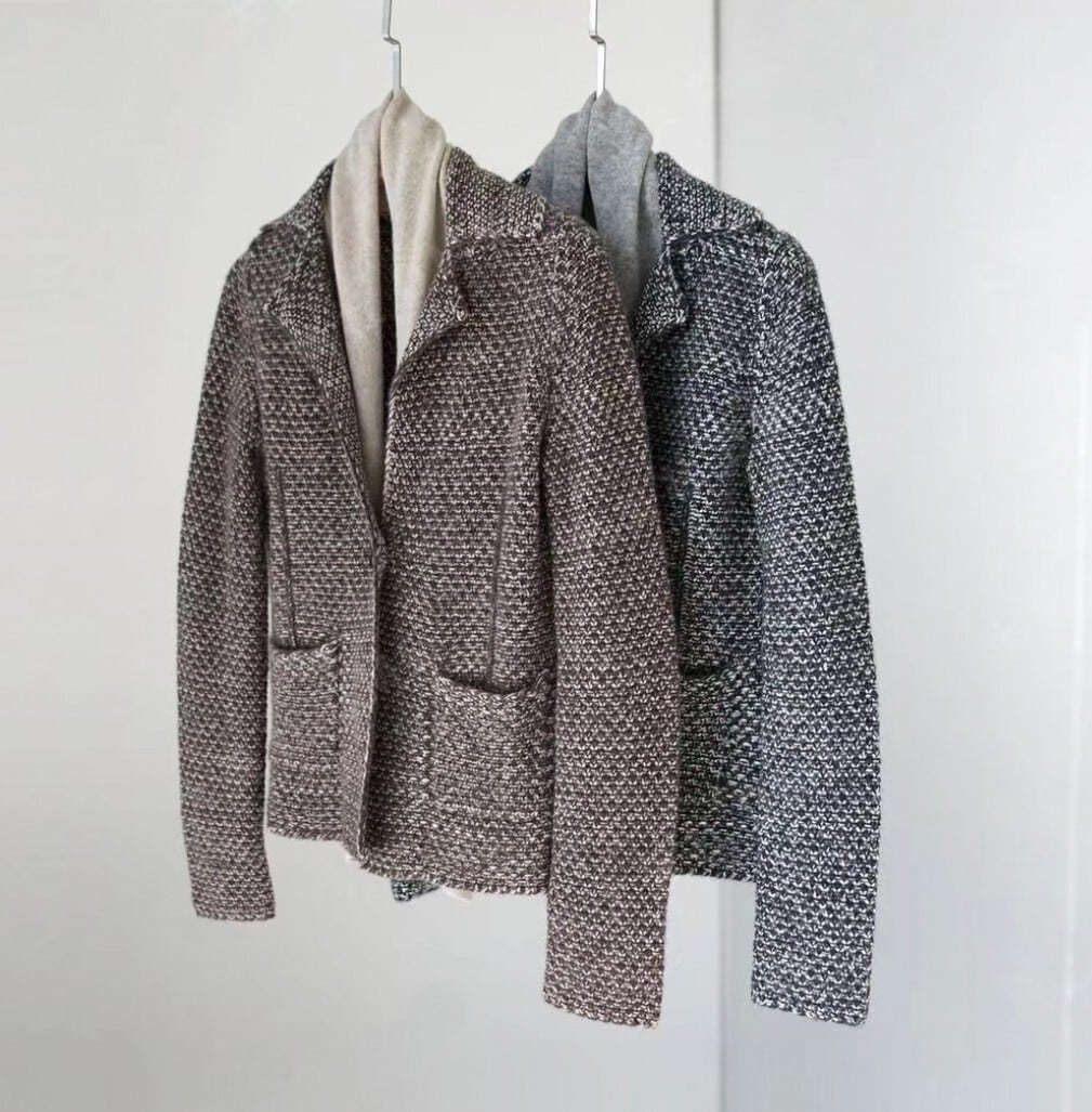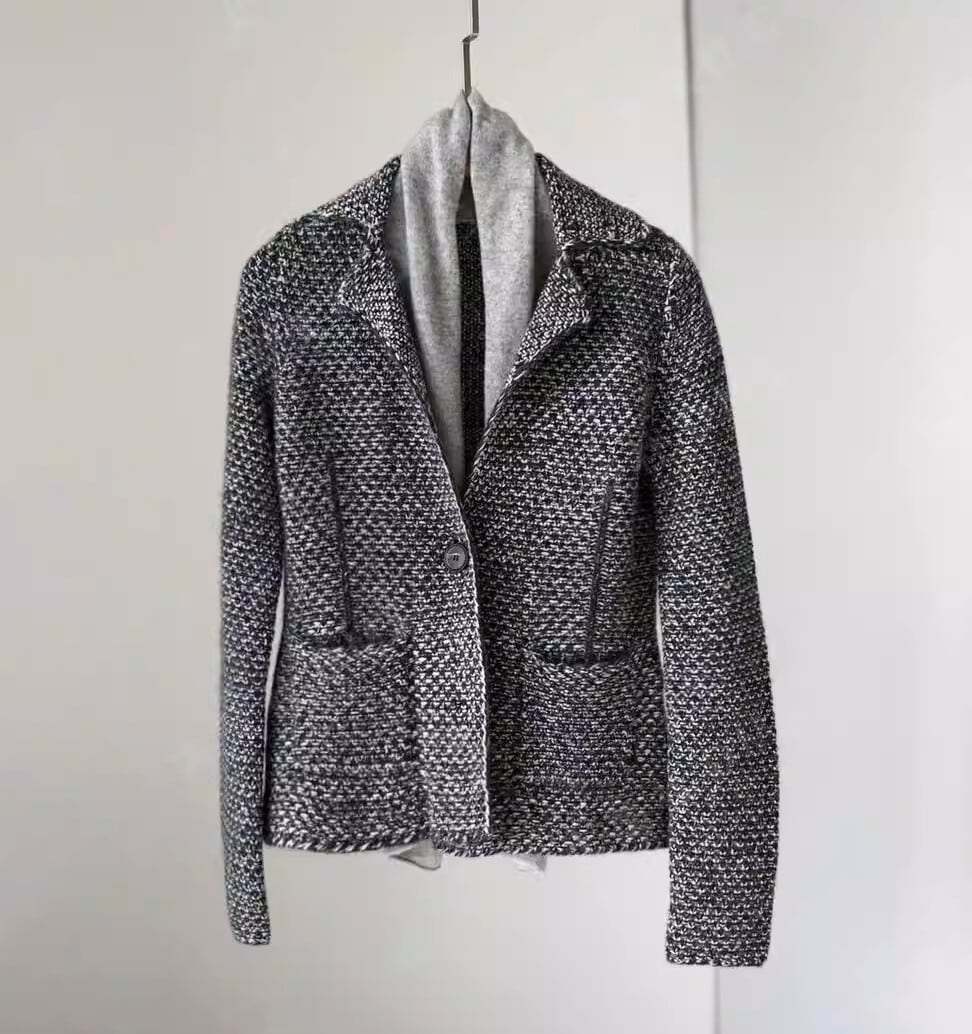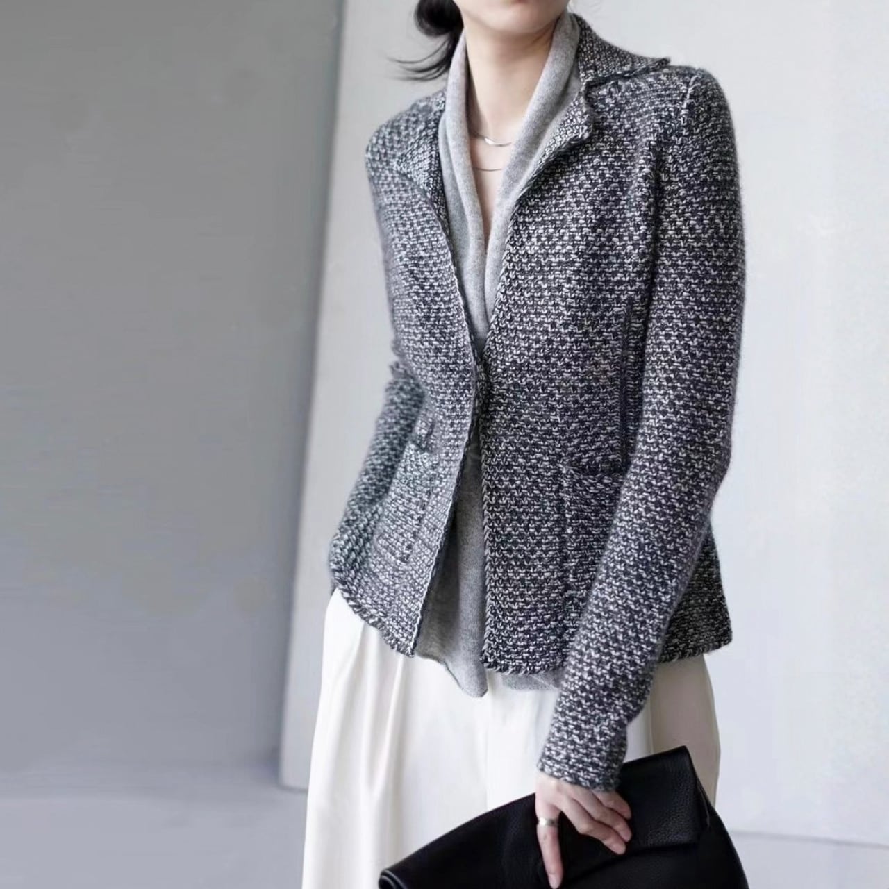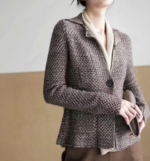 着用するだけでフェミニンな雰囲気が漂うツーピースエレガントスリムニットジャケット。