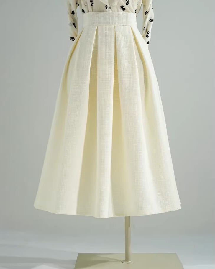 着用するだけでエレガントでフェミニンな雰囲気が漂うハイウエストエレガントプリーツフェアリースカート。