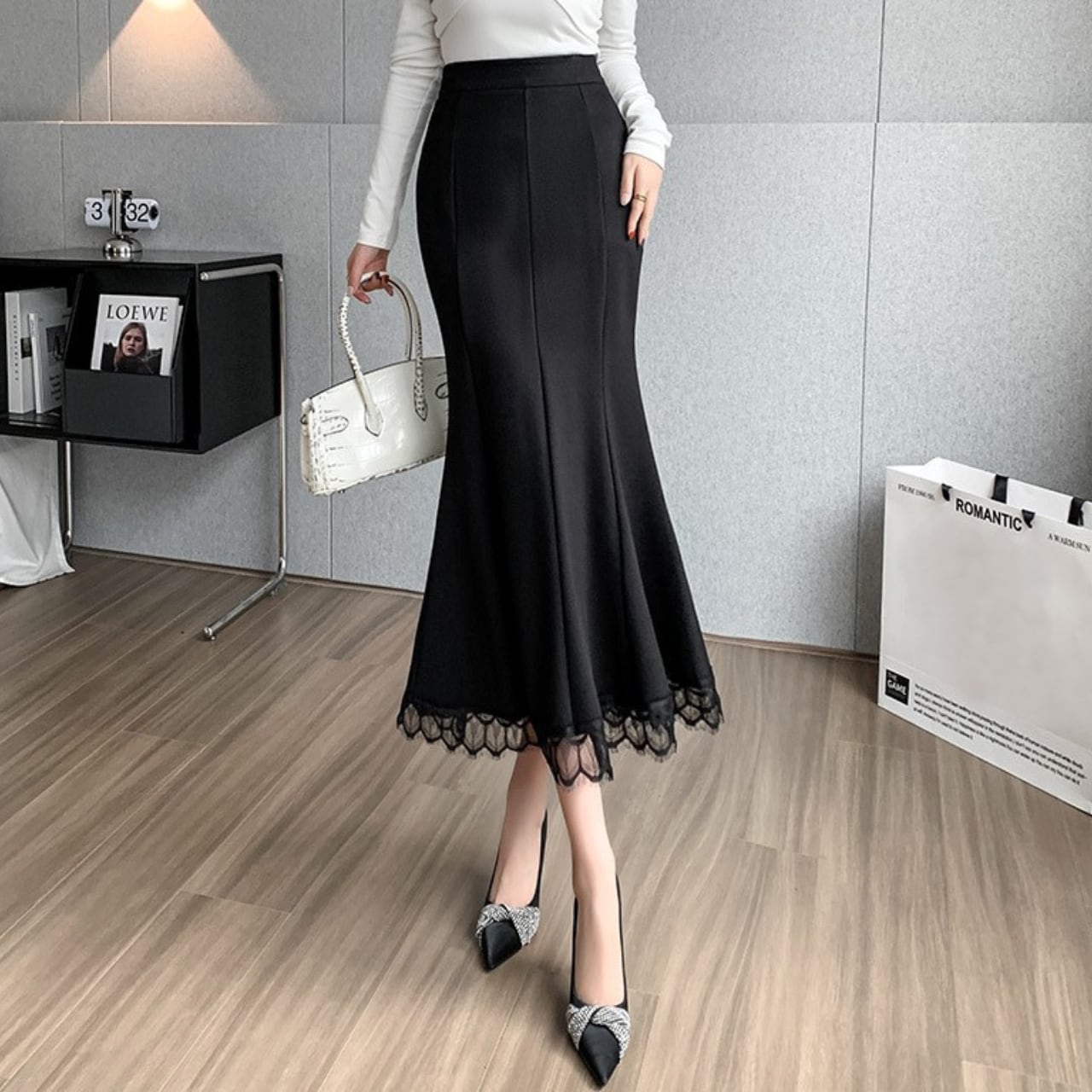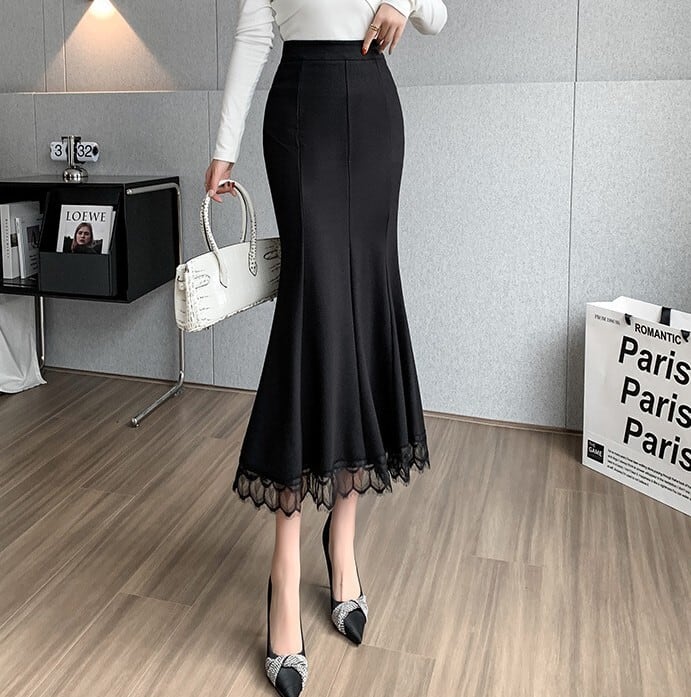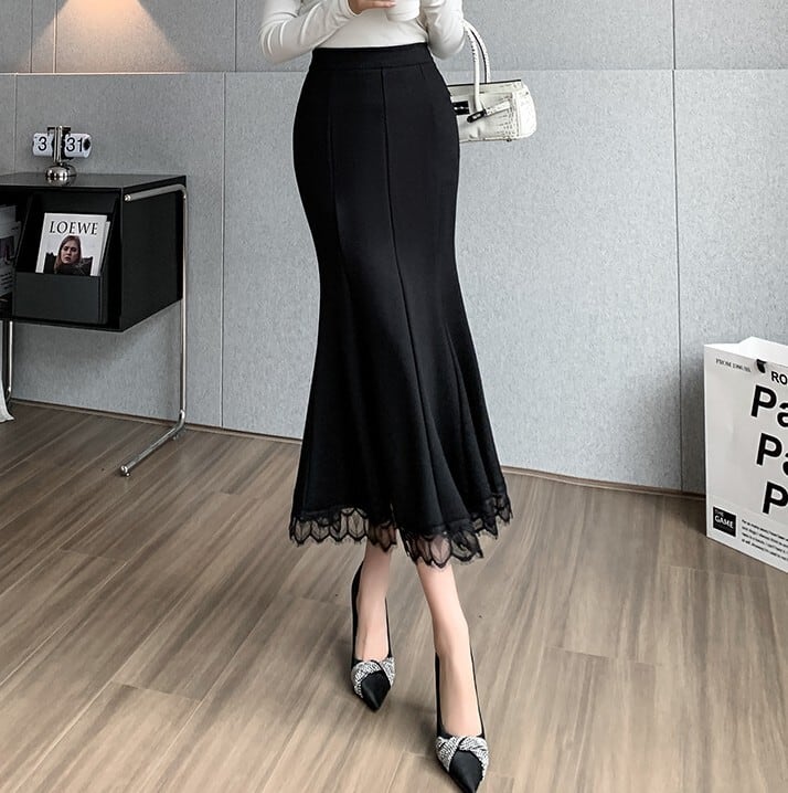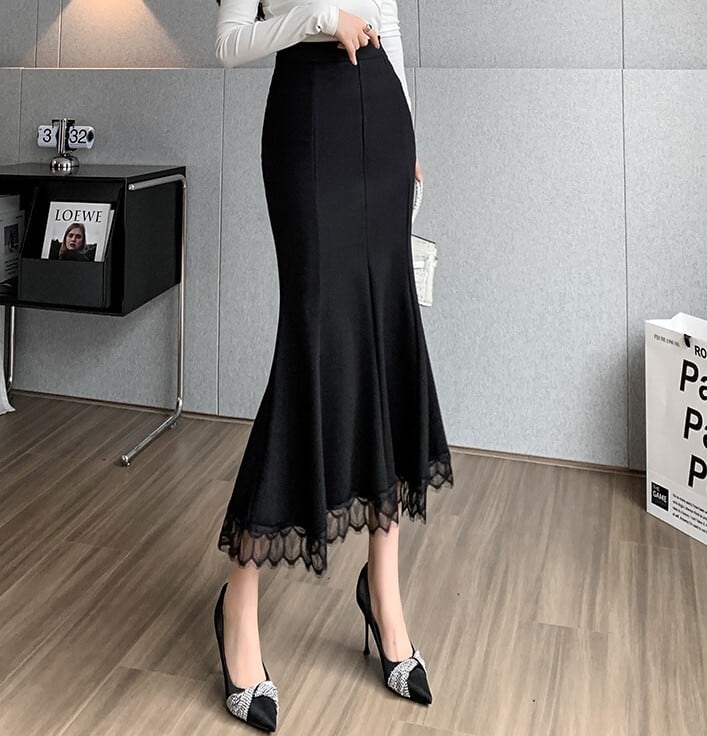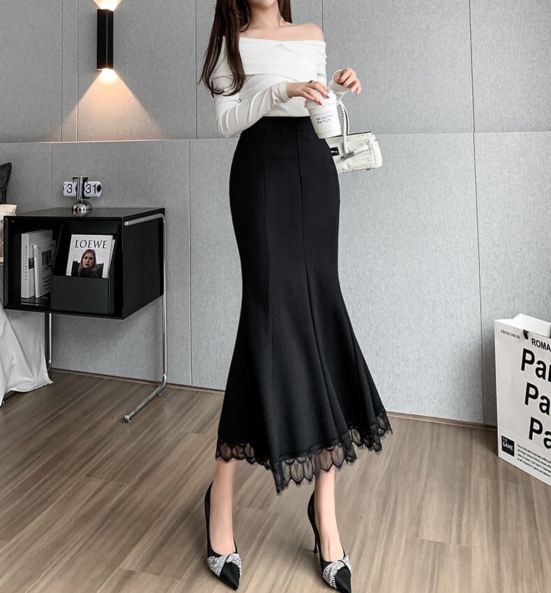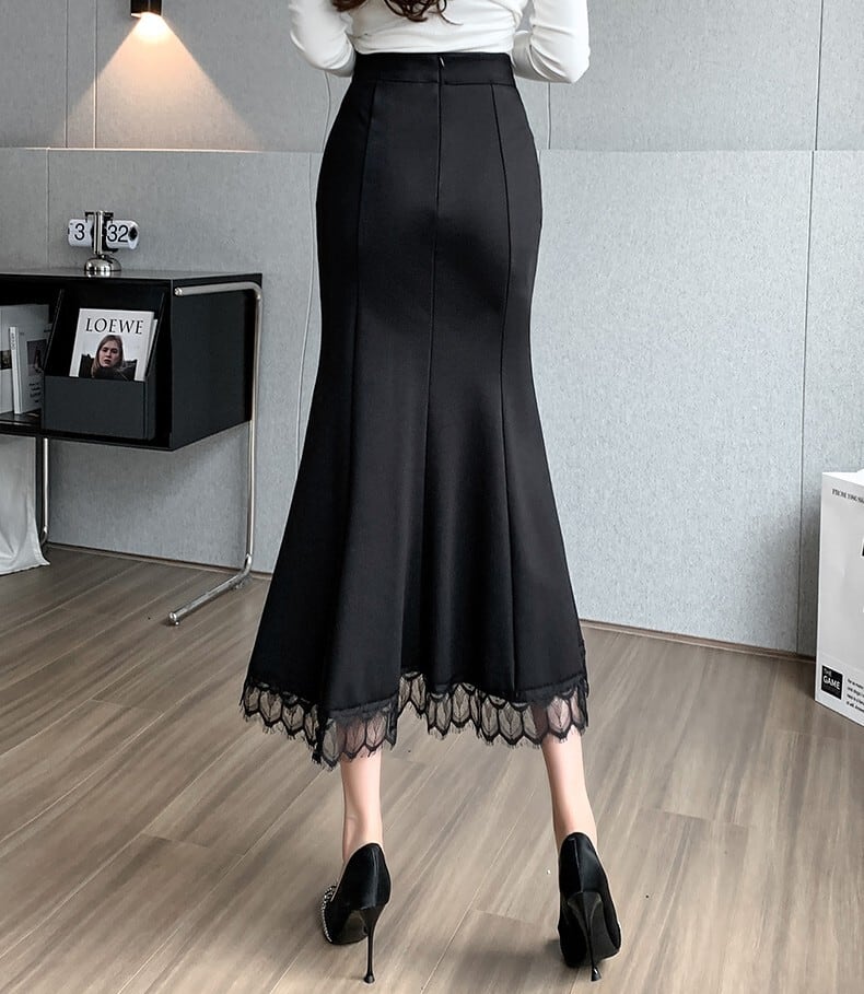 High waist elegant hem lace long mermaid skirt