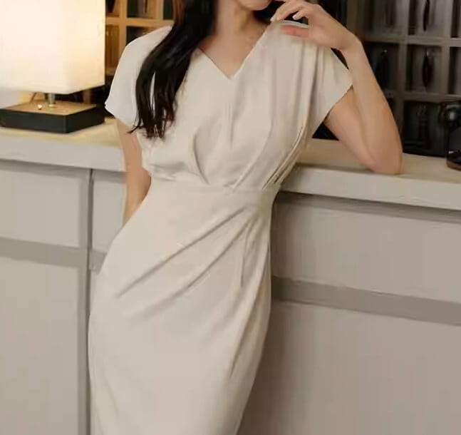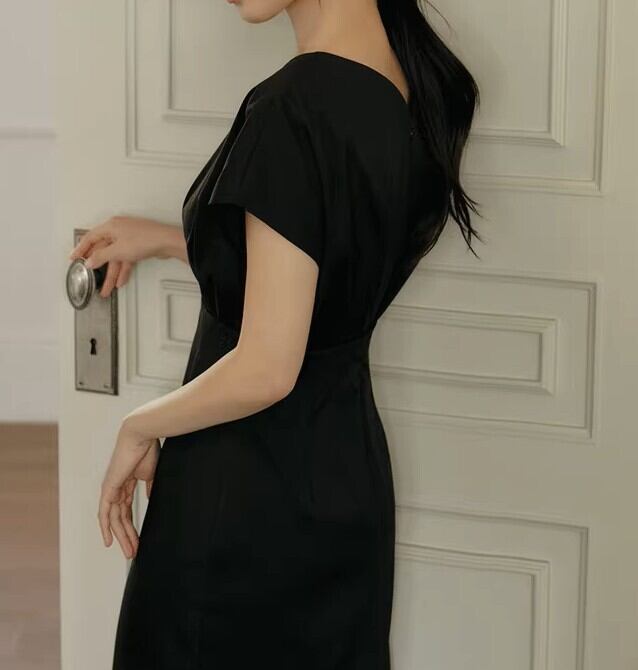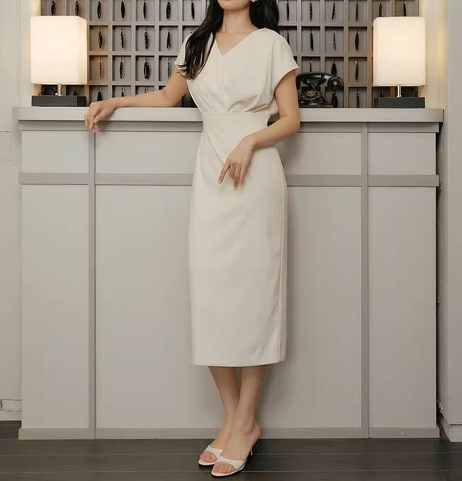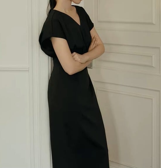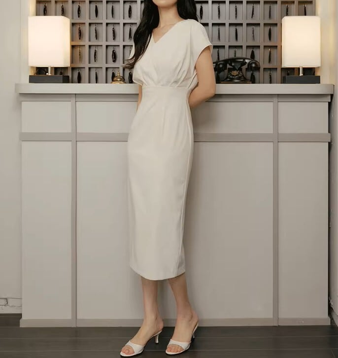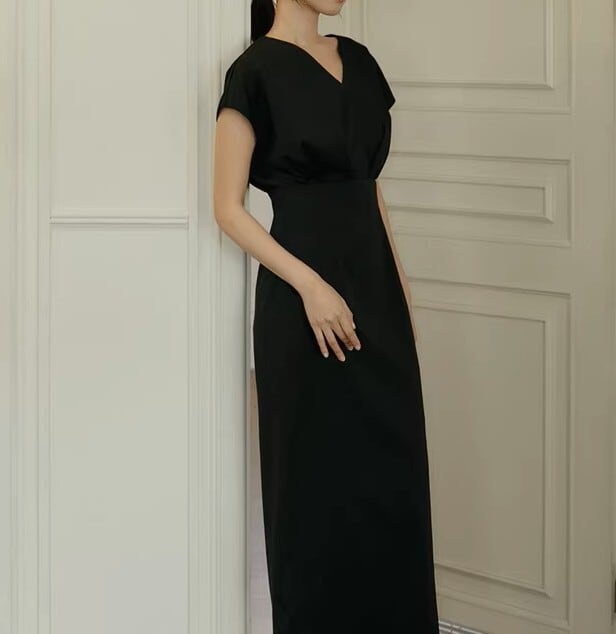 V neck elegant waist fit long dress ( 2color )