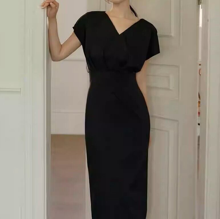 V neck elegant waist fit long dress