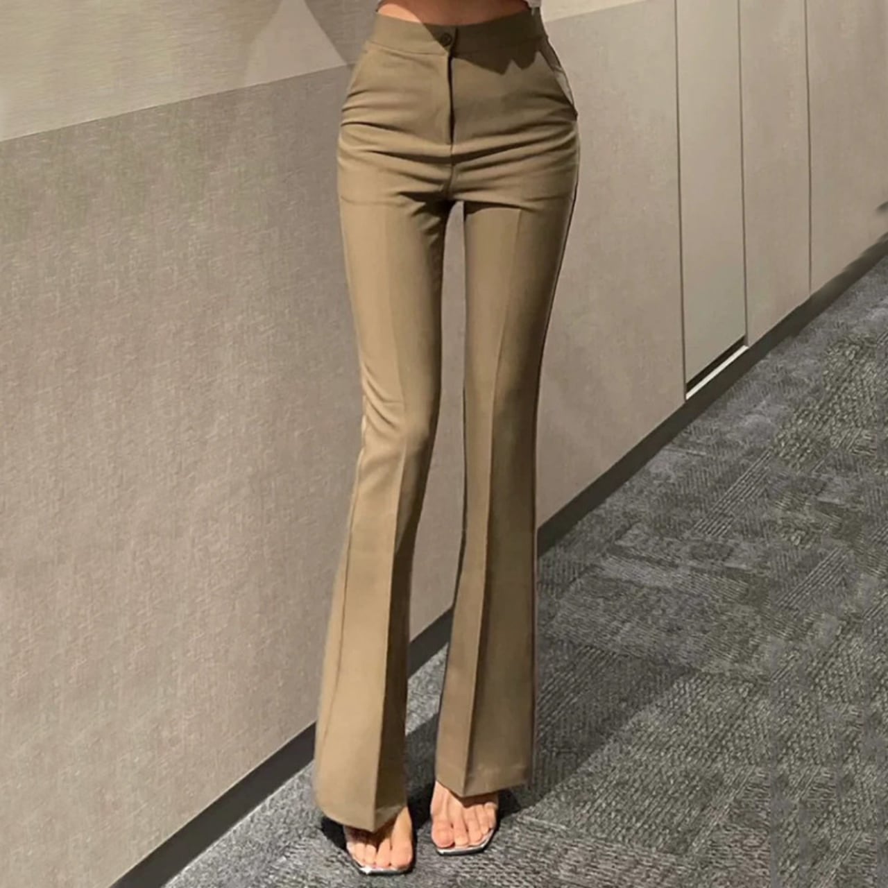 High waist elegant slim fit flare pants (3color)