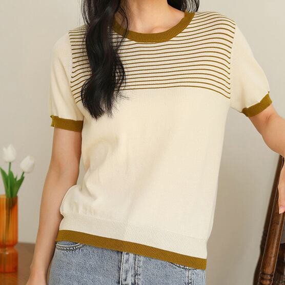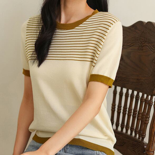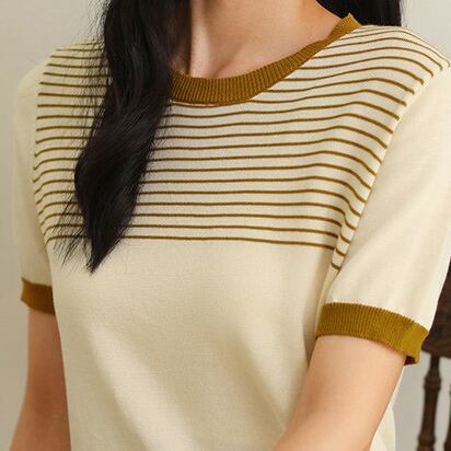 着用するだけで大人可愛い雰囲気が漂うラウンドネックエレガントチェストボーダースリムニット。