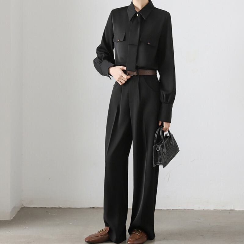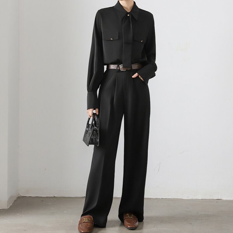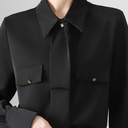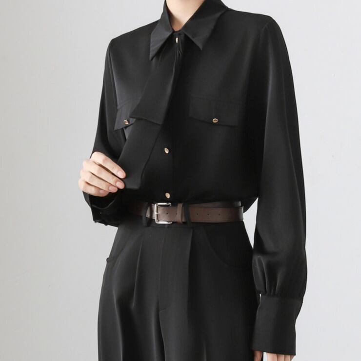 着用するだけでフェミニンな雰囲気が漂うチェストタイエレガントスリムブラウス。