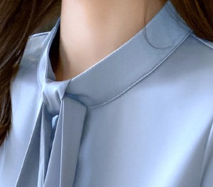 Stand collar elegant chest tie slim shirt ( 3color )