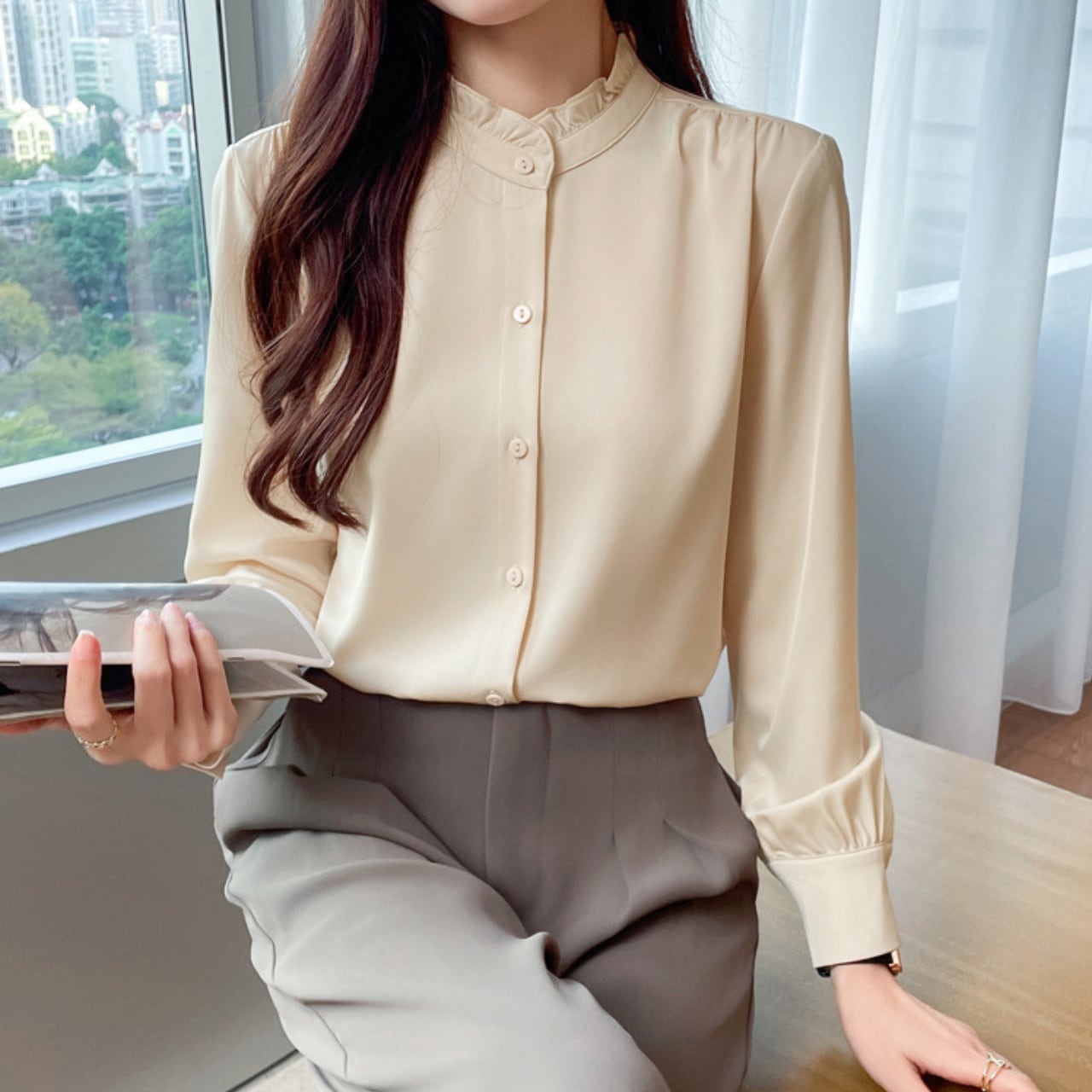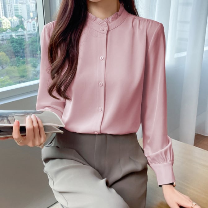 Stand collar elegant slim blouse ( 3color )