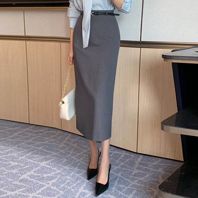 High waist elegant back slit straight long skirt