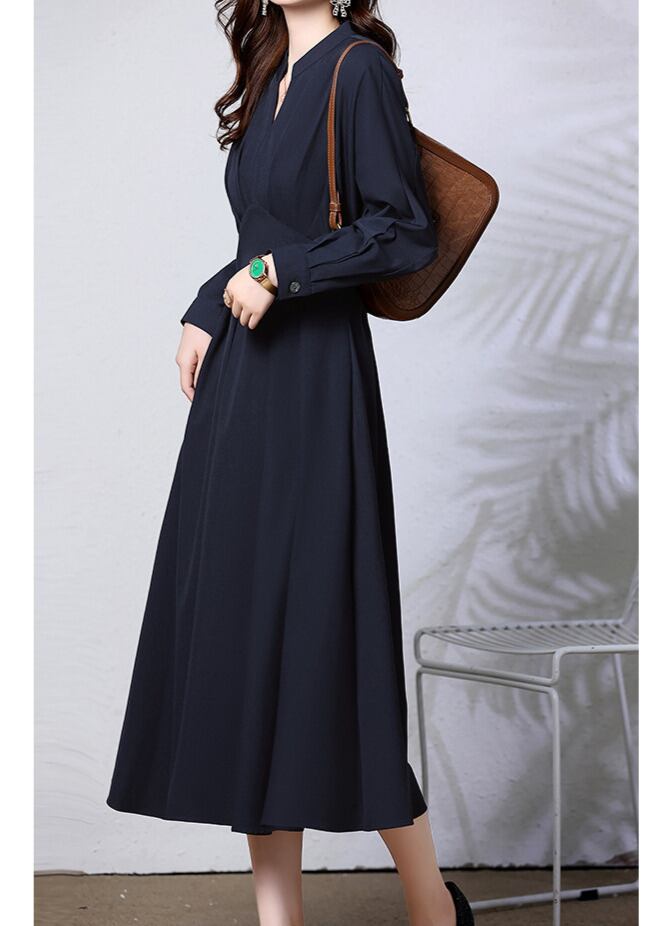 Key neck elegant waist fit swing long dress ( 4color )