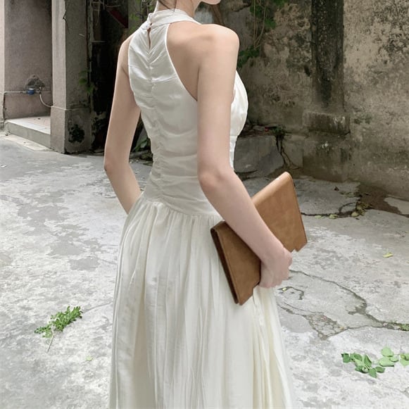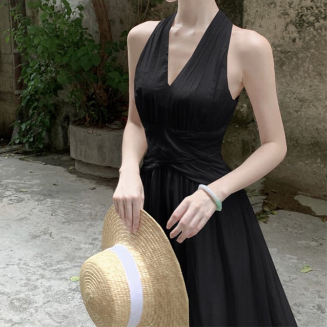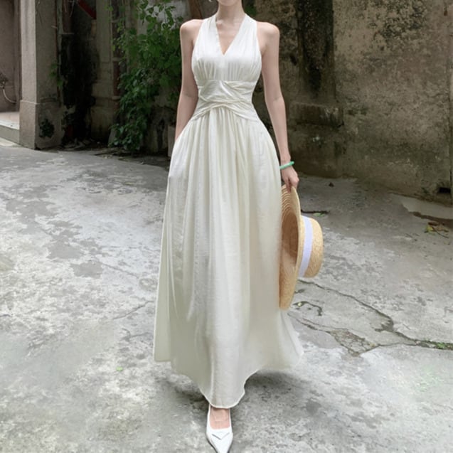 着用するだけでフェミニンな雰囲気が漂うVネックエレガントウエストフィットスリムロングドレス。