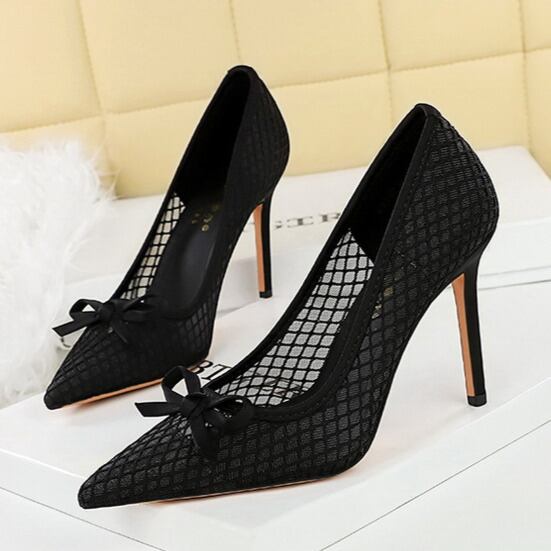 Ribbon stitch elegant pointed toe mesh pumps ( 2color )