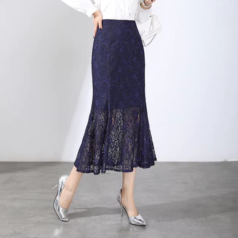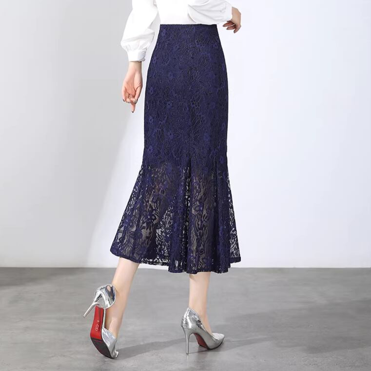 High waist elegant slim mermaid lace skirt