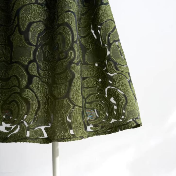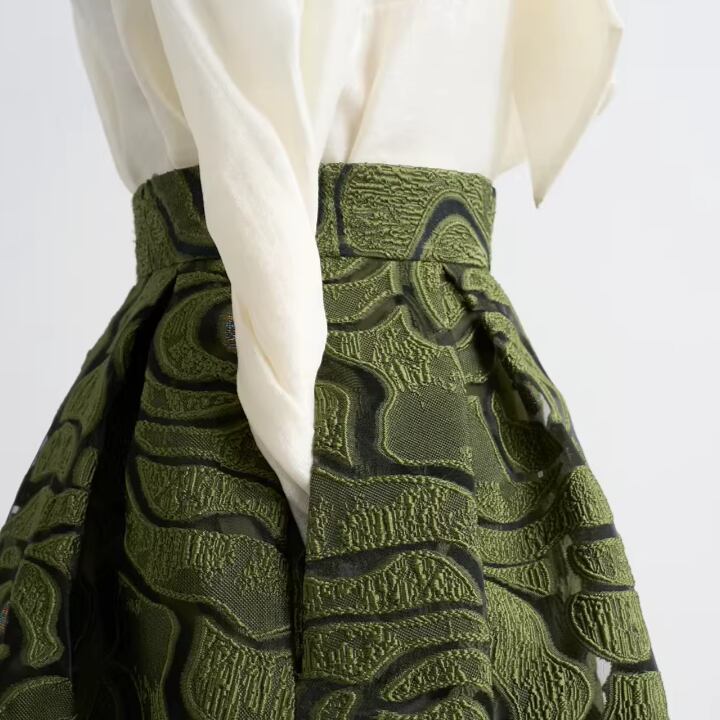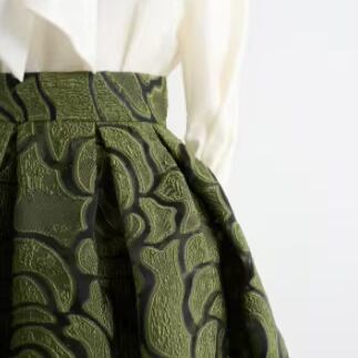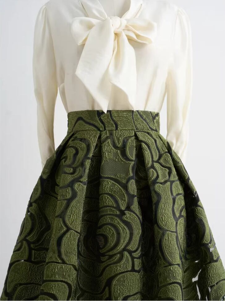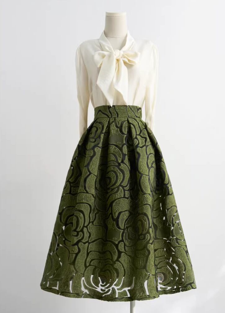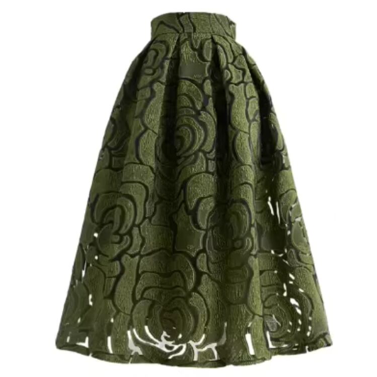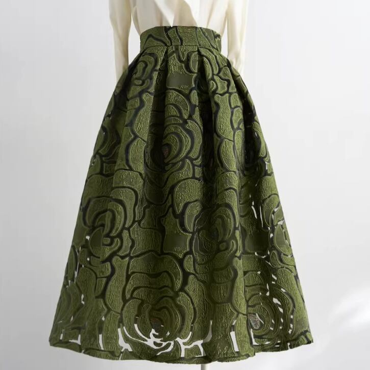 着用するだけで上品な雰囲気を演出するハイウエストエレガントジャカードフローラルスカート。