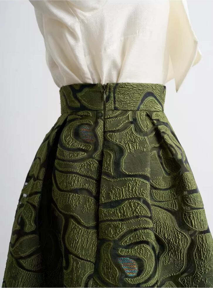 High waist elegant jacquard floral skirt