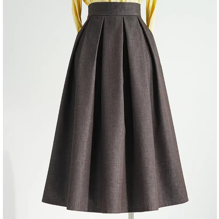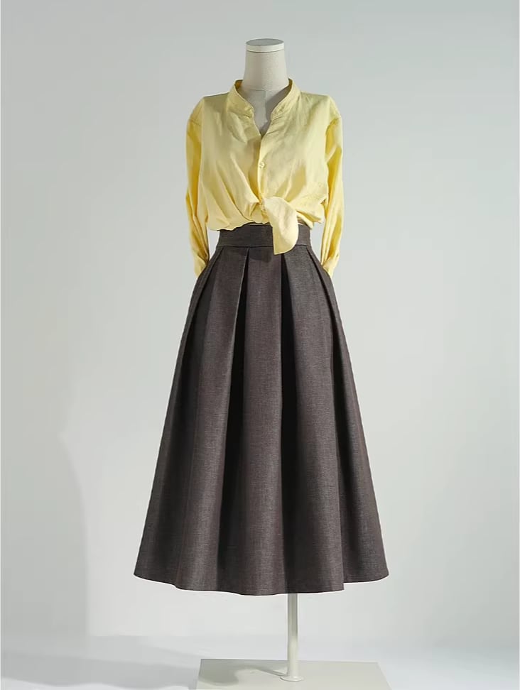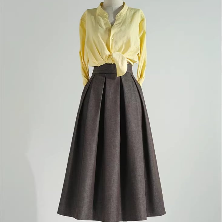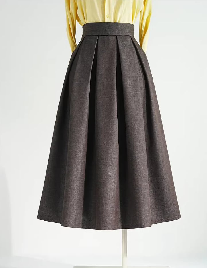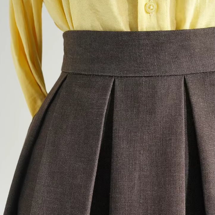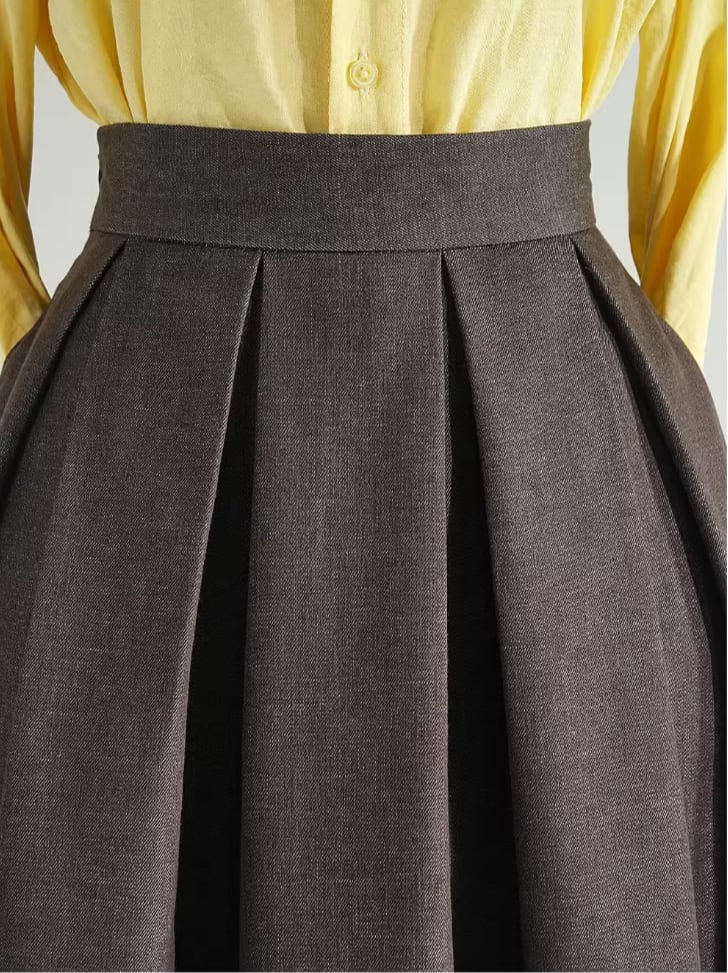 High waist elegant retro pleats linen skirt