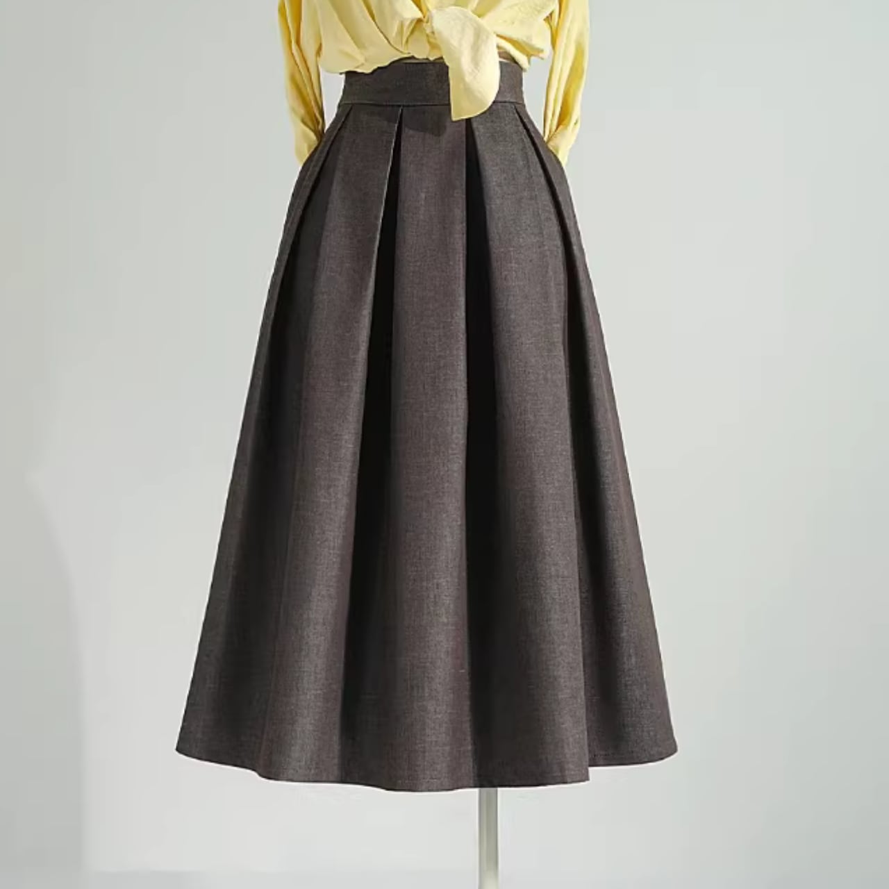 着用するだけでエレガントな雰囲気を醸し出すハイウエストエレガントプリーツリネンスカート。