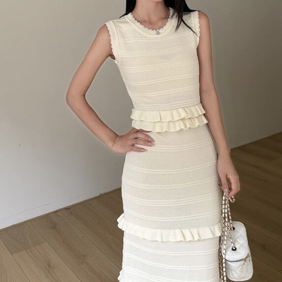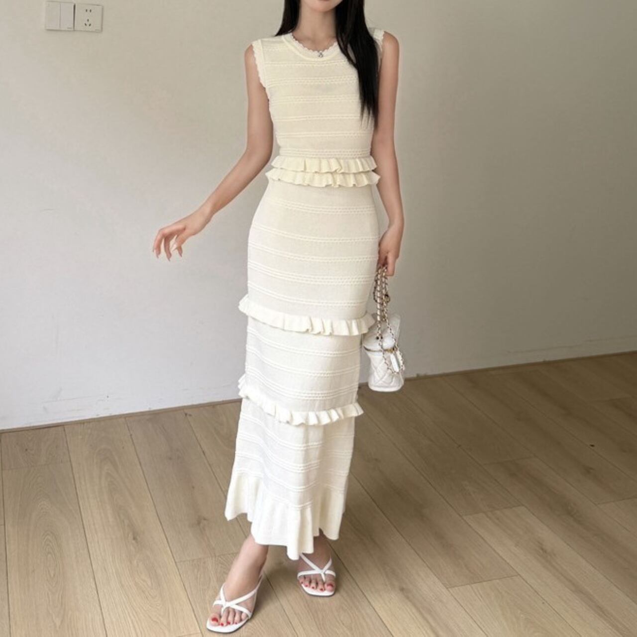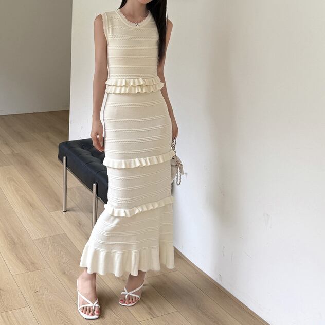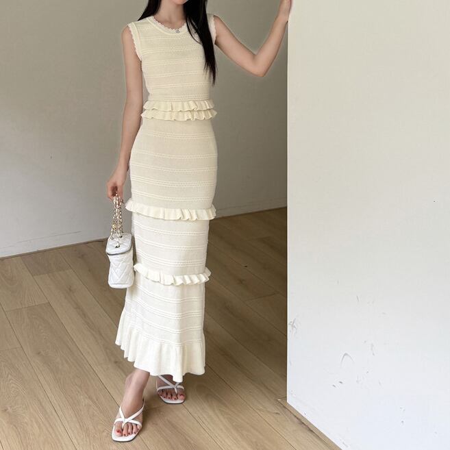 Ruffle stitch elegant sleeveless long dress