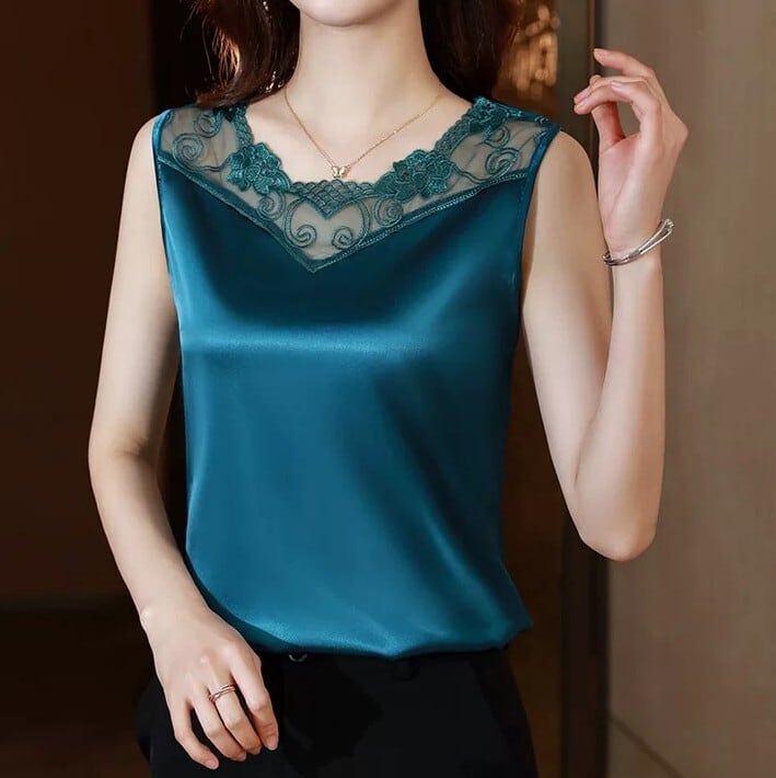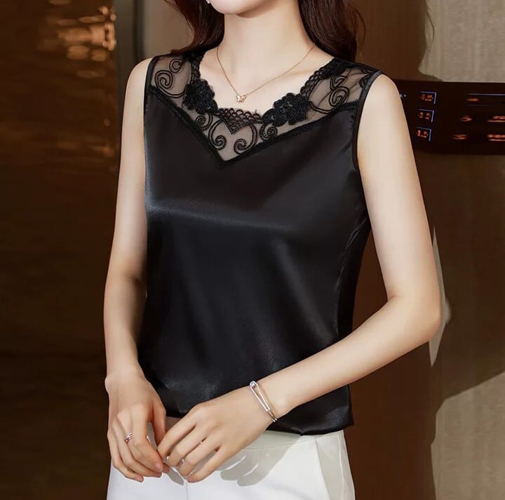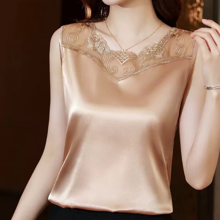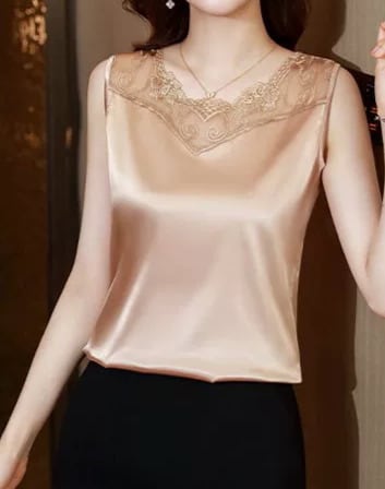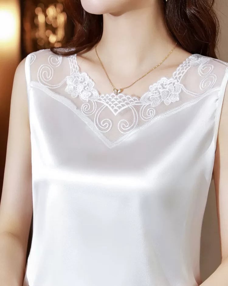 V neck elegant lace stitch silk camisole ( 4color )