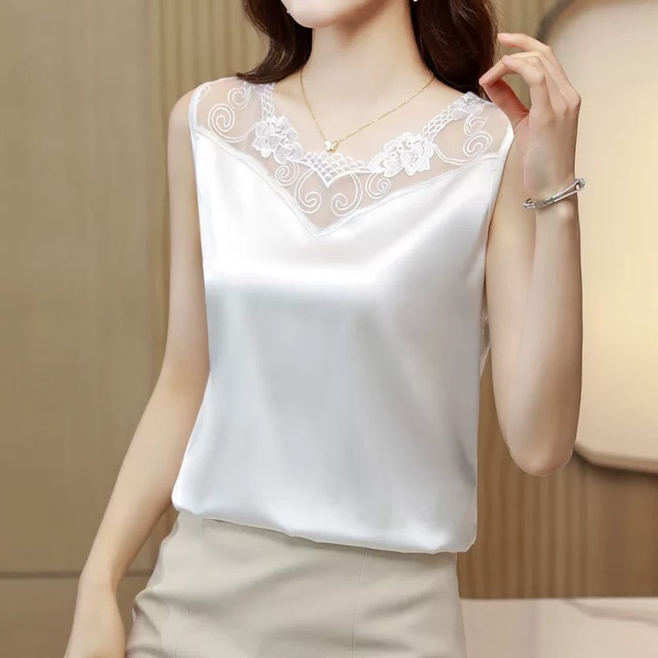 Square neck elegant satin camisole