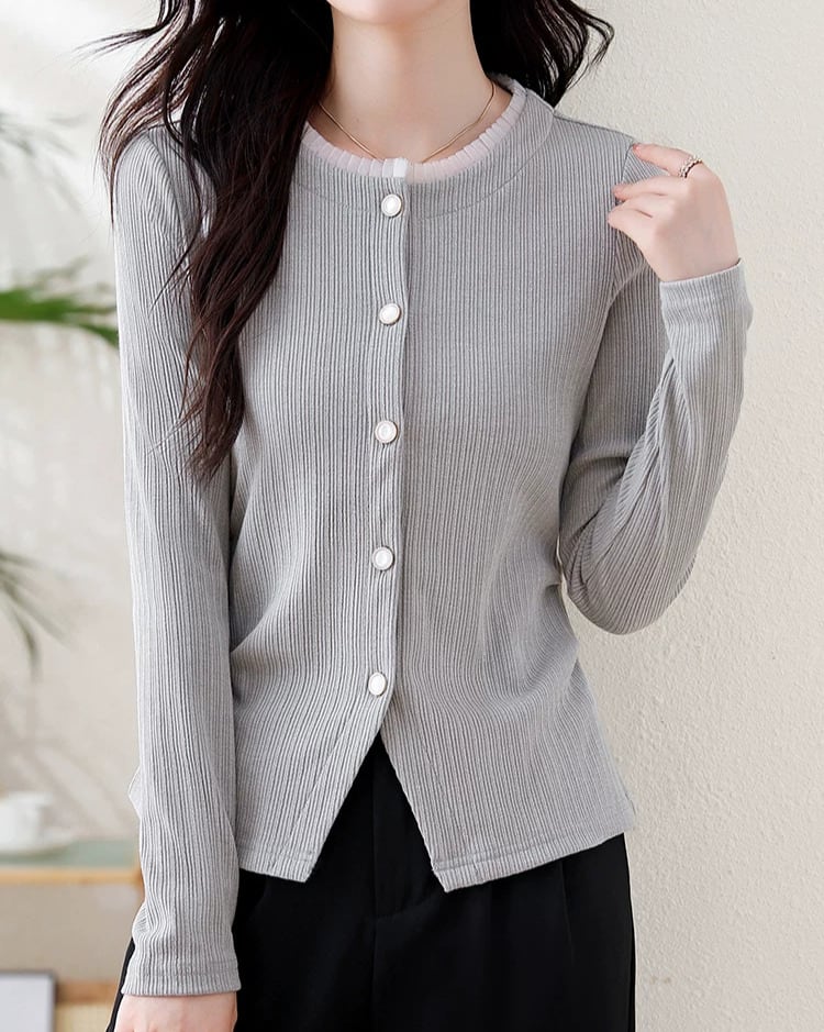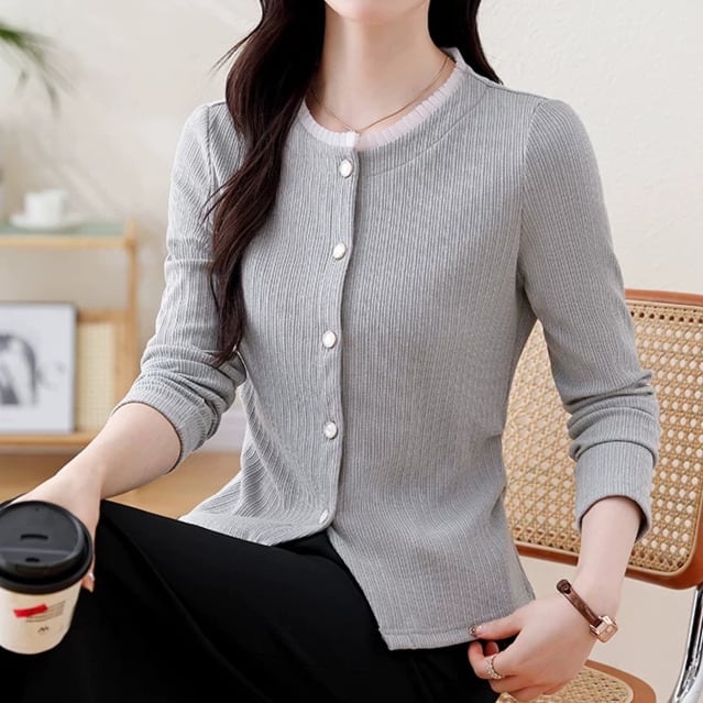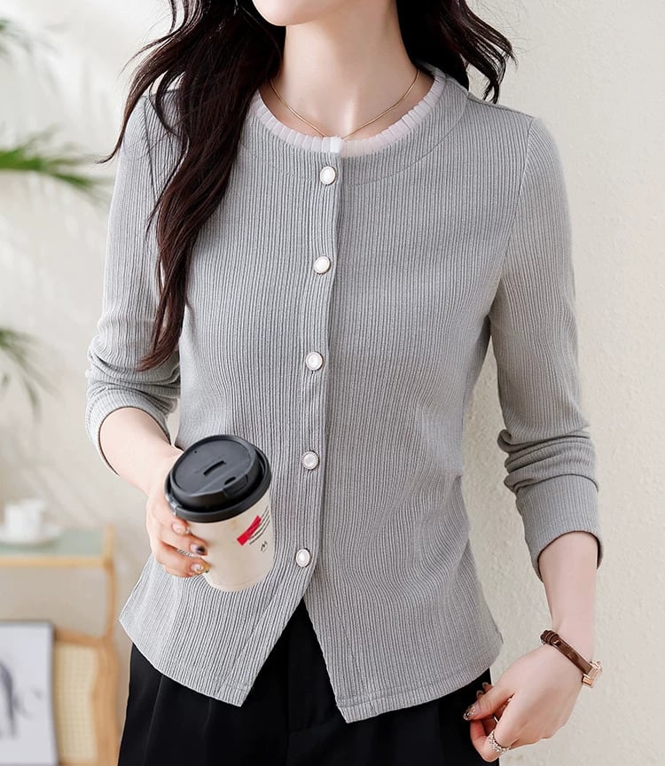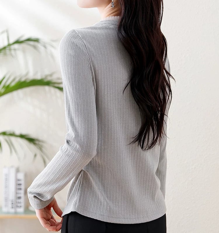 着用するだけで上品で大人可愛い雰囲気が漂うレースステッチエレガントウエストフィットスリムシャツ 。