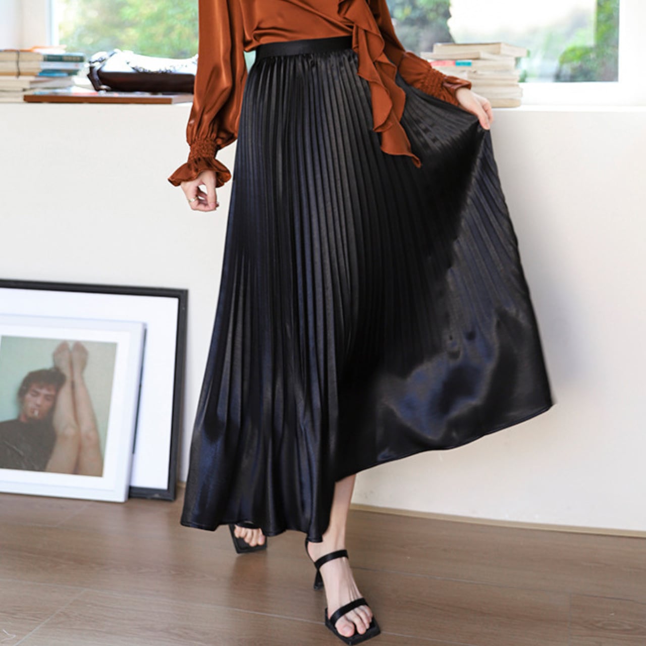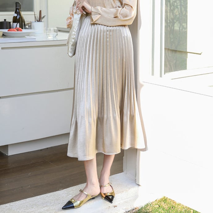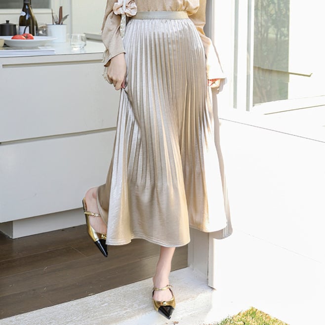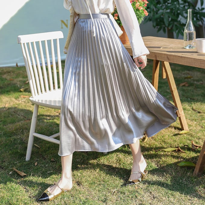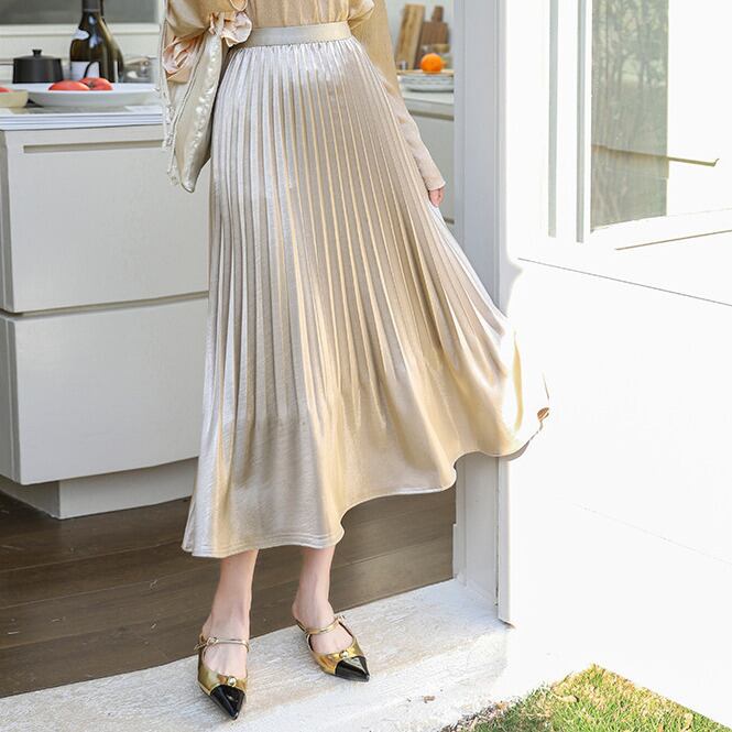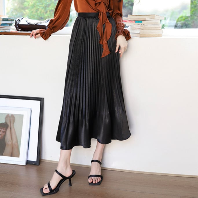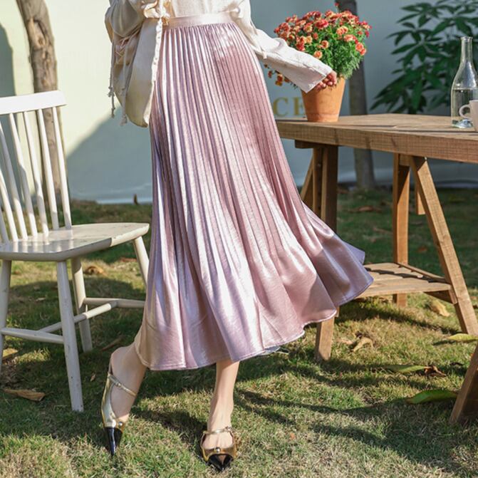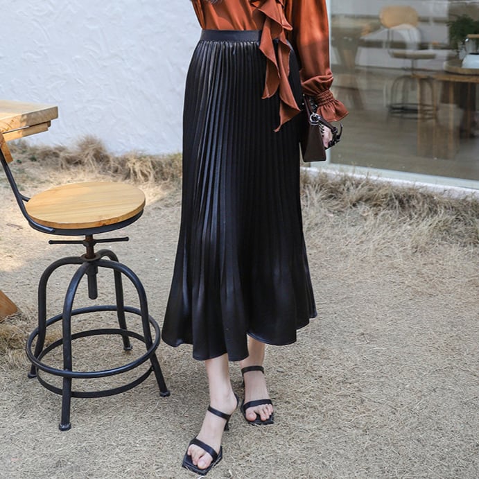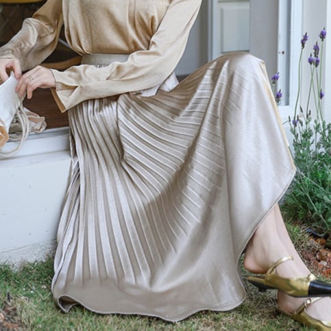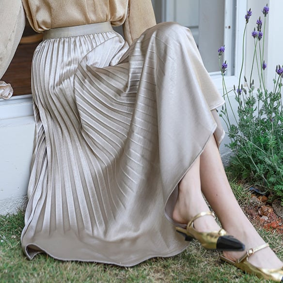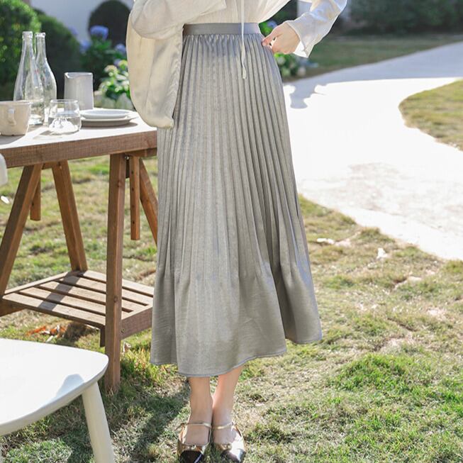 着用するだけでフェミニンな雰囲気が漂うハイウエストエレガントドレープスイングスカート。