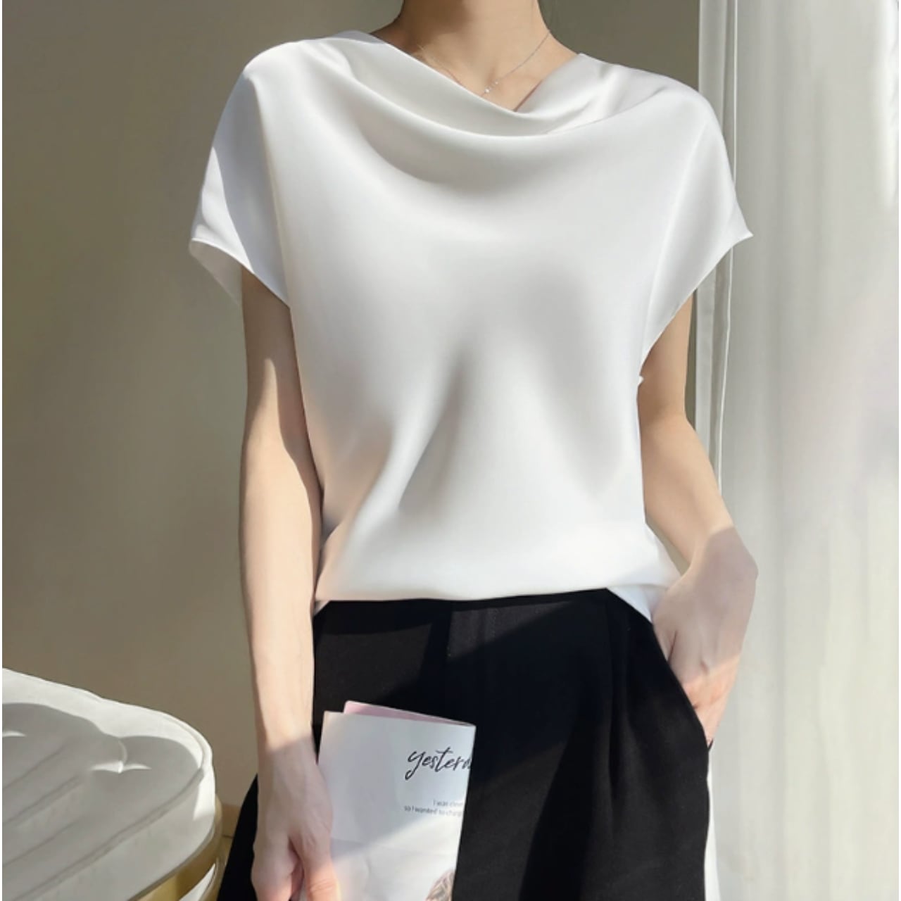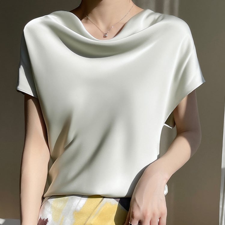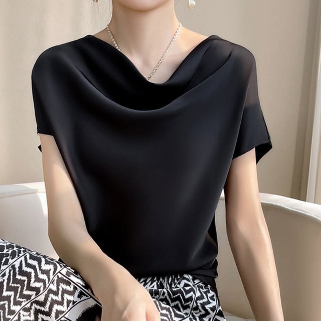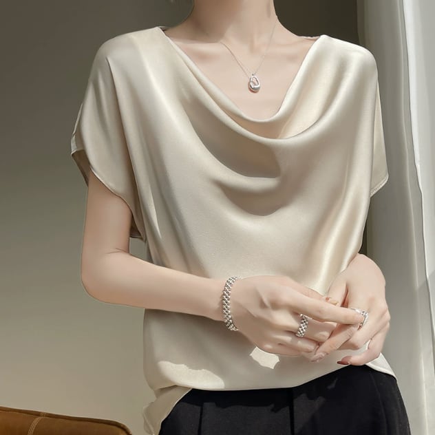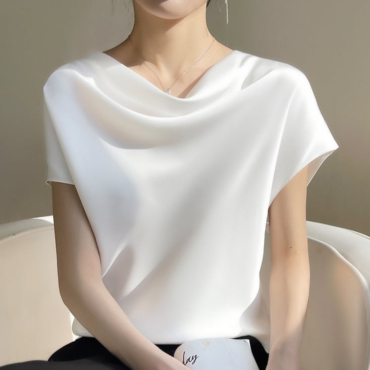 Pile neck elegant ice silk shirt ( 5color )