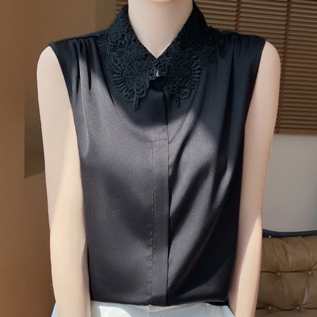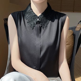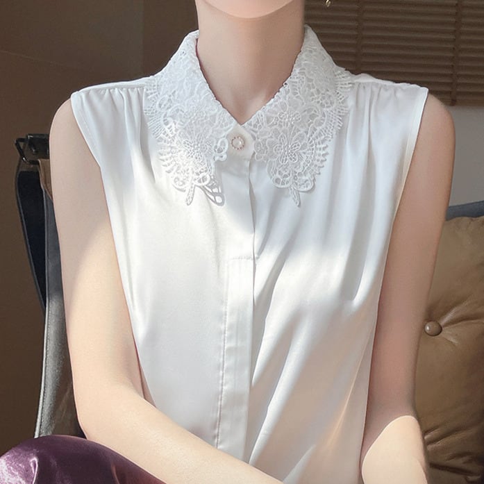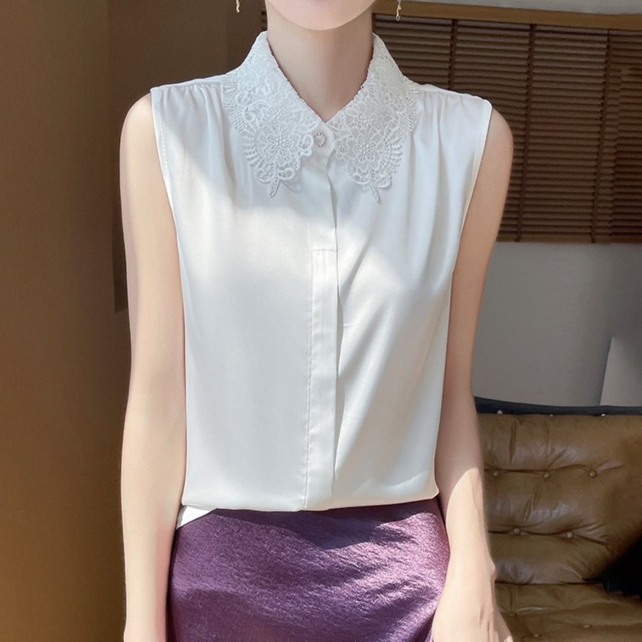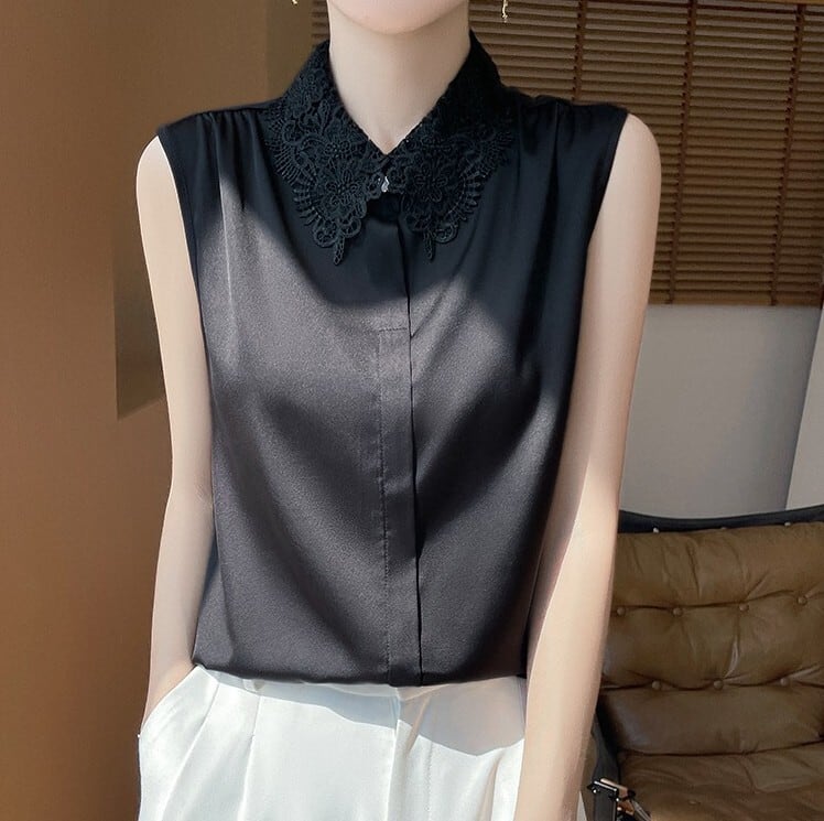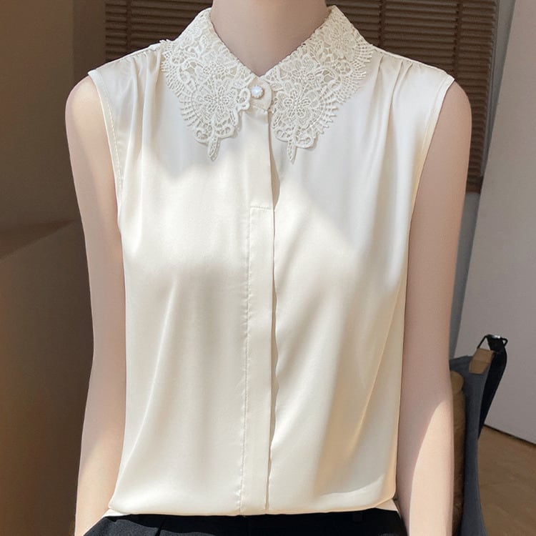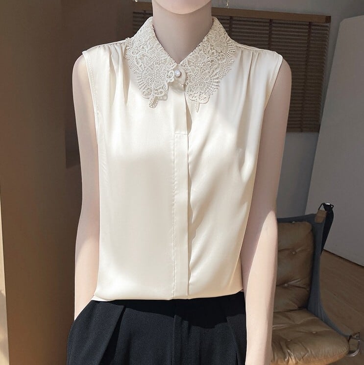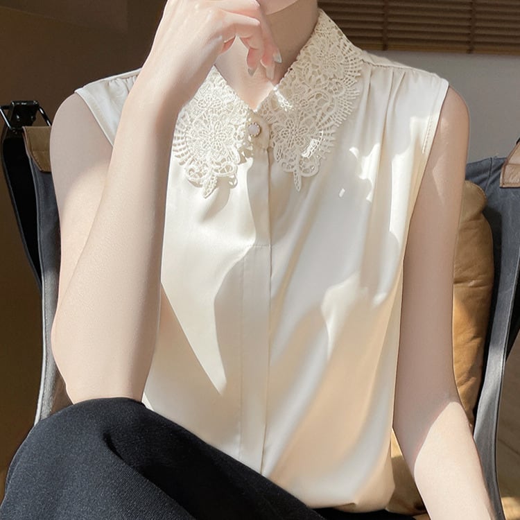 Lace collar elegant sleeveless slim shirt ( 3color )