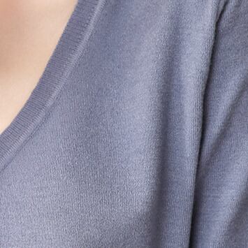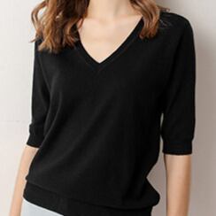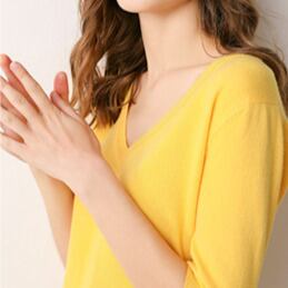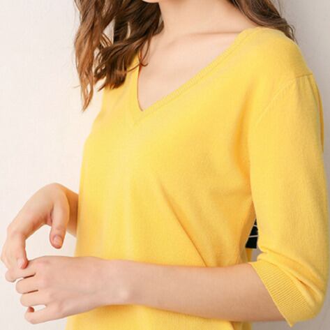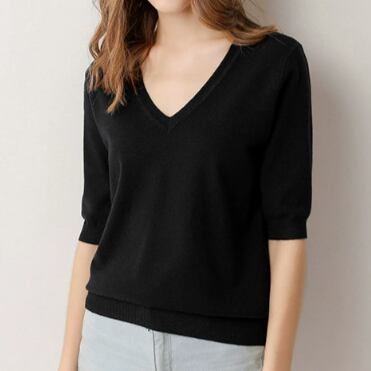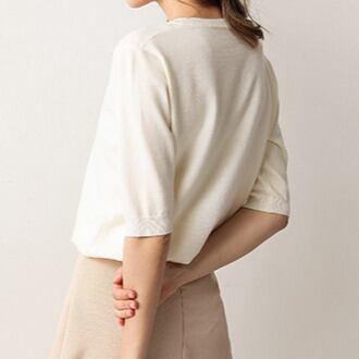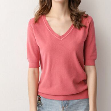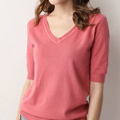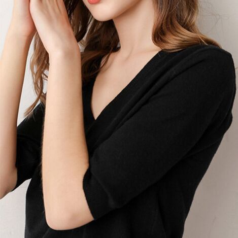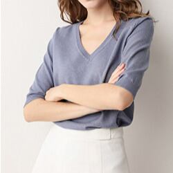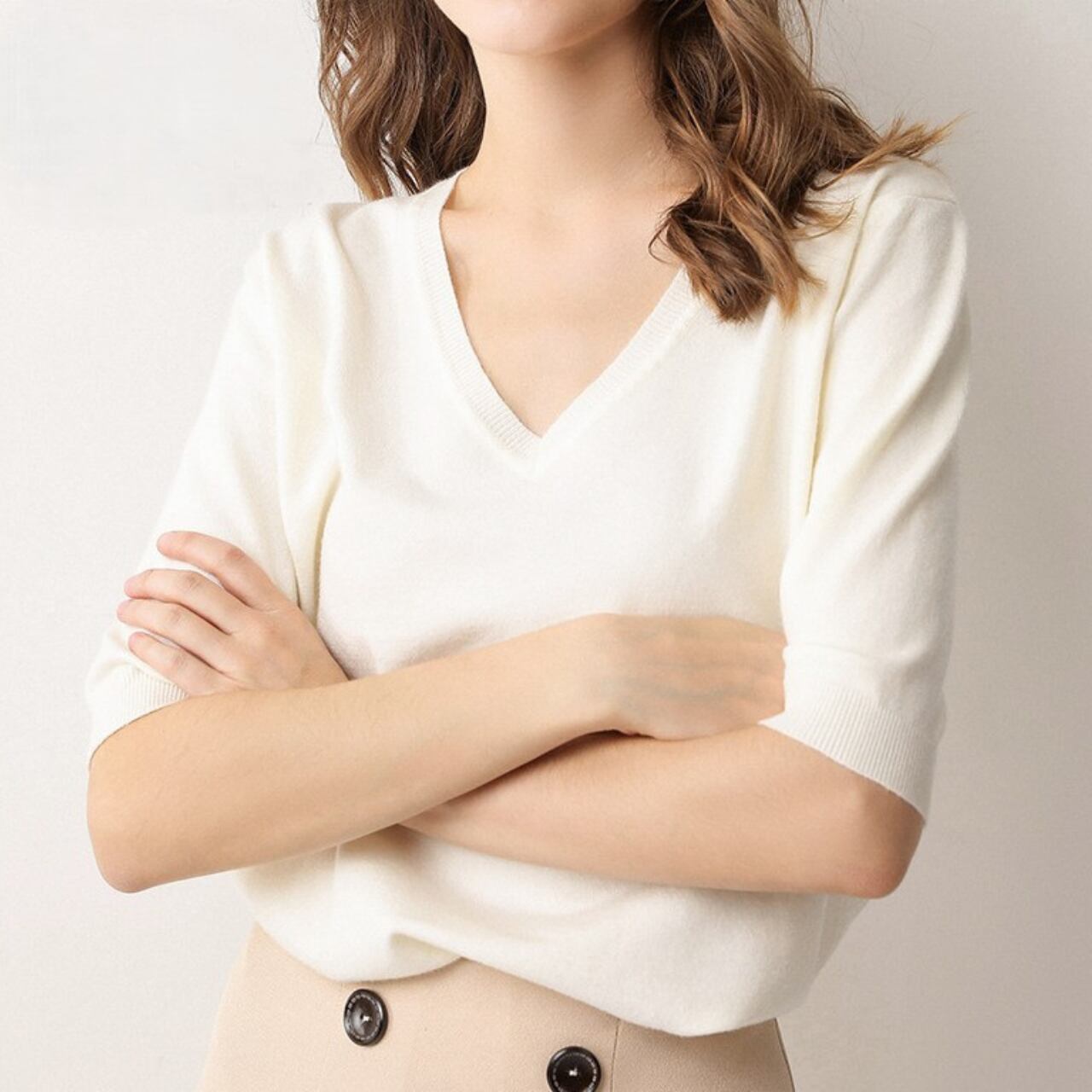 着用するだけで大人可愛い雰囲気が漂うハーフスリーブエレガントVネックスリムニット。
