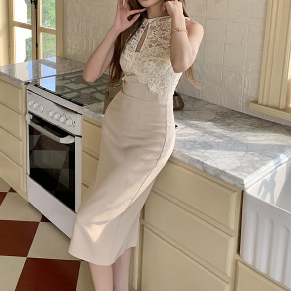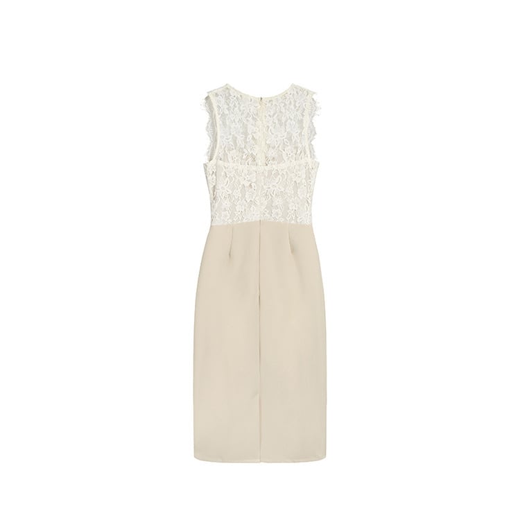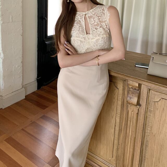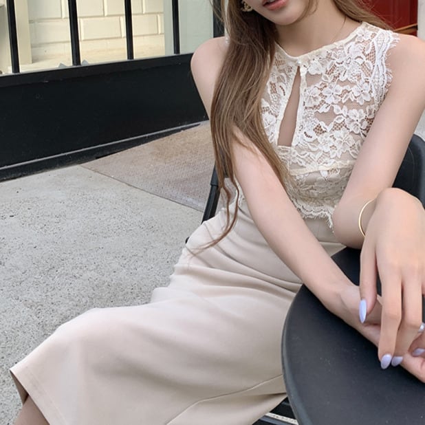 Sleeveless elegant lace stitch slim dress