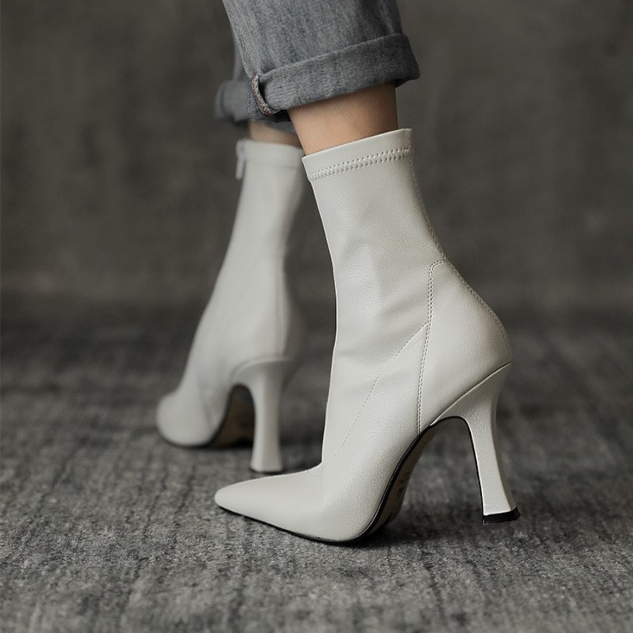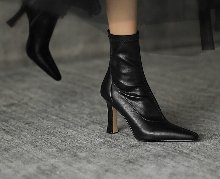 足元をフェミニンに演出するエレガントレトロショートブーツ。