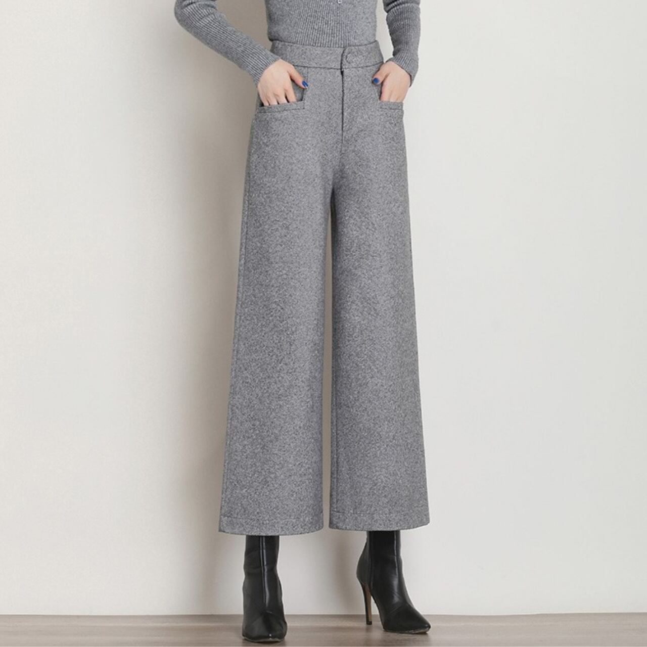 綺麗見えするのに、ゆったりリラックス感満載のエレガントウールワイドレッグパンツ。