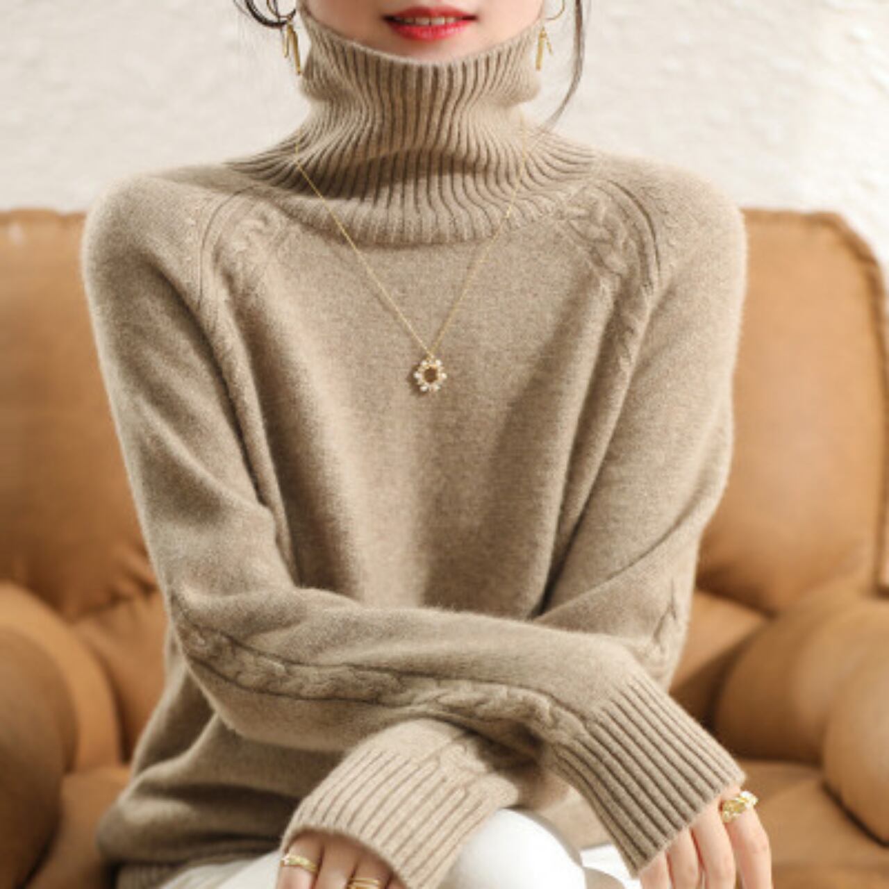 真冬の定番、1枚着用するだけで大人可愛いコーデが完成するエレガントタートルニット ♪