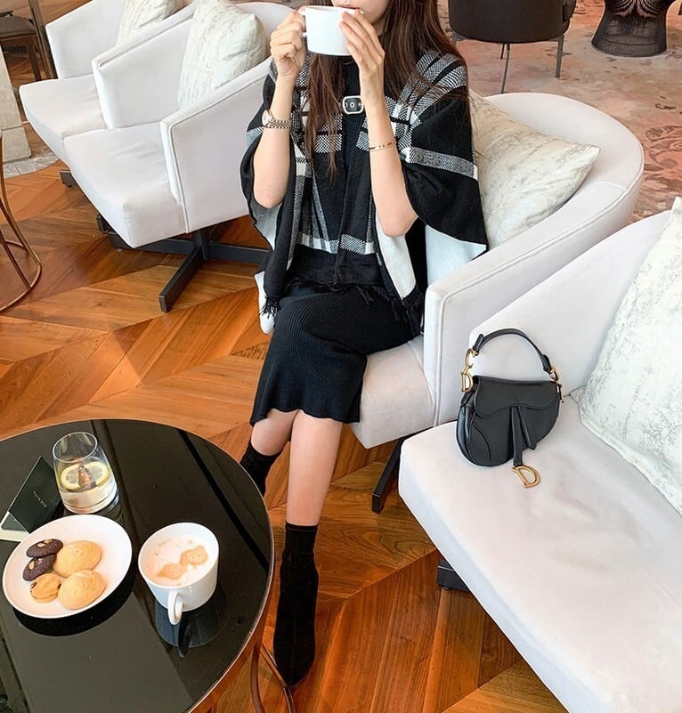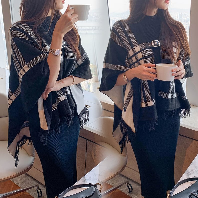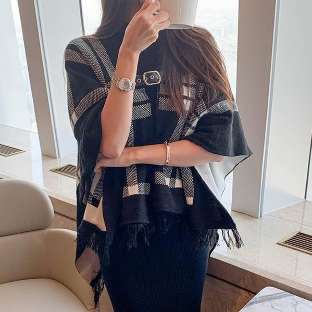 サラリと羽織るだけで上品さと大人可愛さを表現できるポンチョニットカーディガン。
